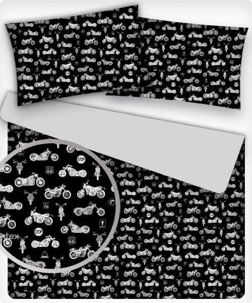 Description Children's cotton fabric by the meter Motorcycles on Black
