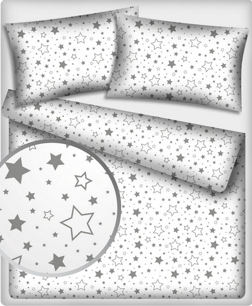 Description Children's cotton fabric Stars Grey on White, new