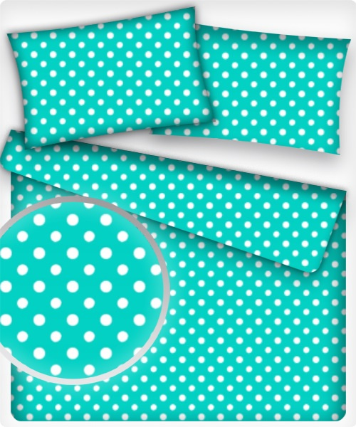 Description Children's cotton fabrics, by the meter. Dot 10 mm, White on Mint