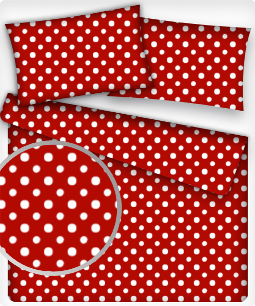 Description Children's cotton fabrics, by the meter. Dot 10 mm, White on Red