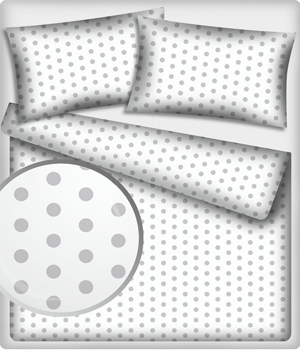 Children's cotton fabrics, by the meter. Dot 22 mm, Gray on White