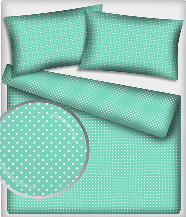 Description Children's cotton fabrics, by the meter. Dot 7 mm, white on Mint