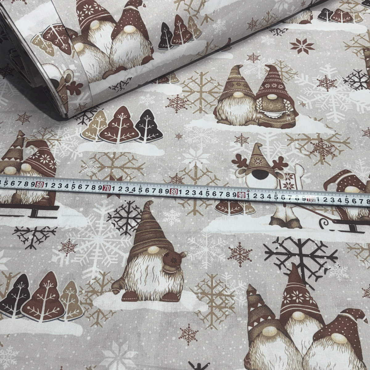 Decorative cotton fabric with a Christmas pattern brings festive joy to your home.