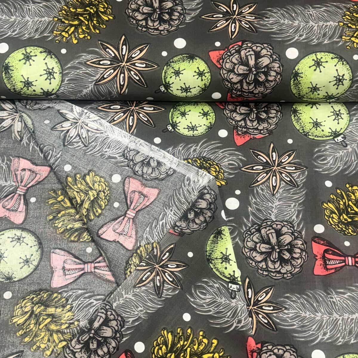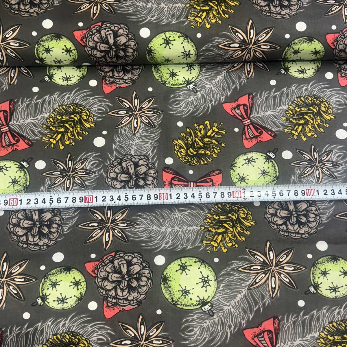 Description Christmas cotton fabric, by the meter, width 160 cm, Christmas motif on Graphite