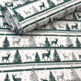 Christmas cotton fabric, by the meter, width 160 cm, Christmas pattern color Green 03