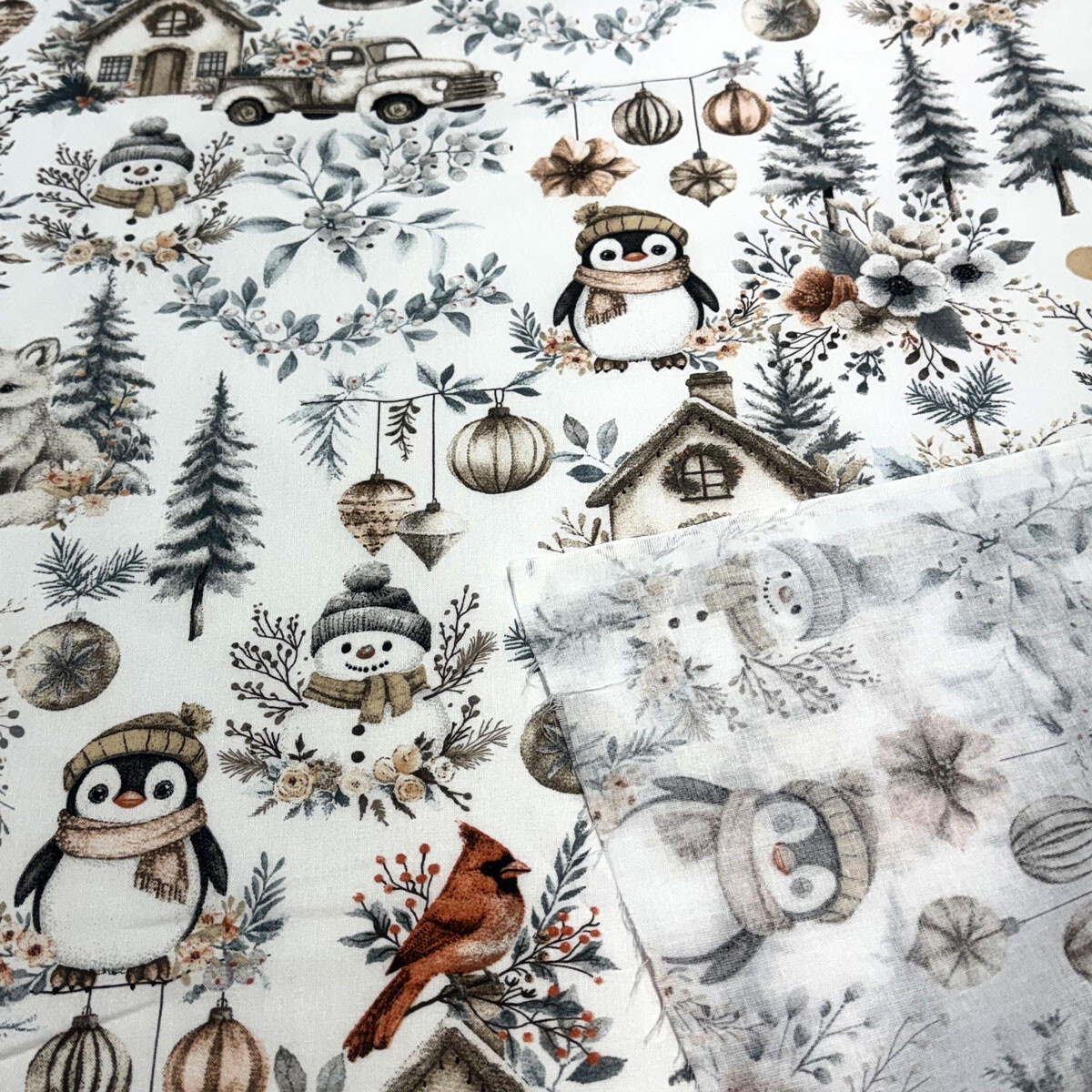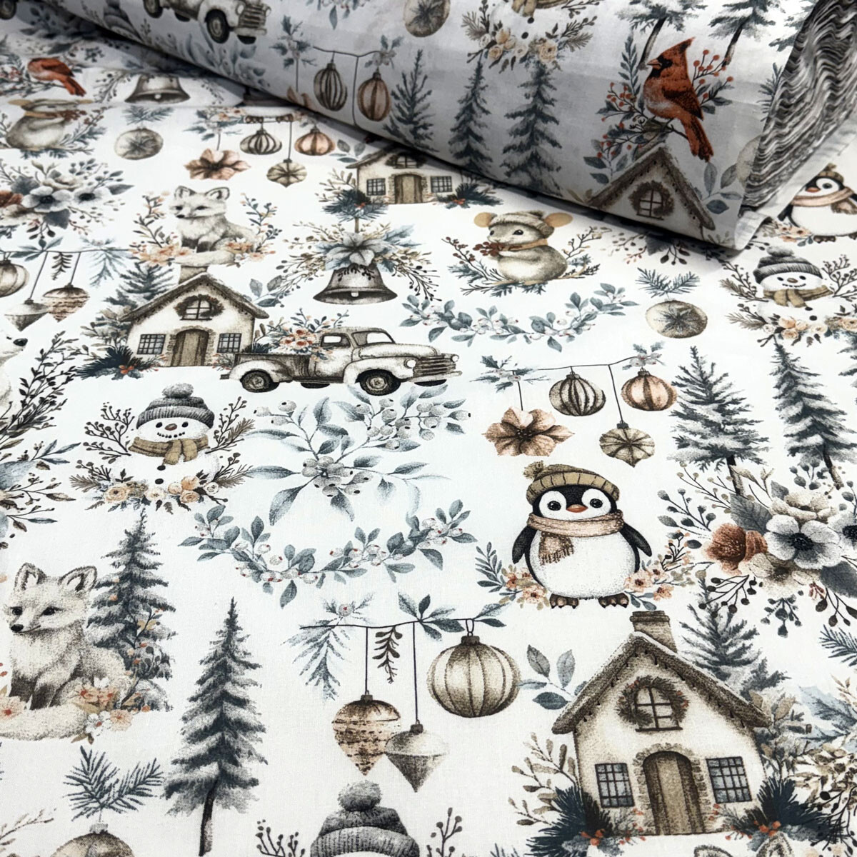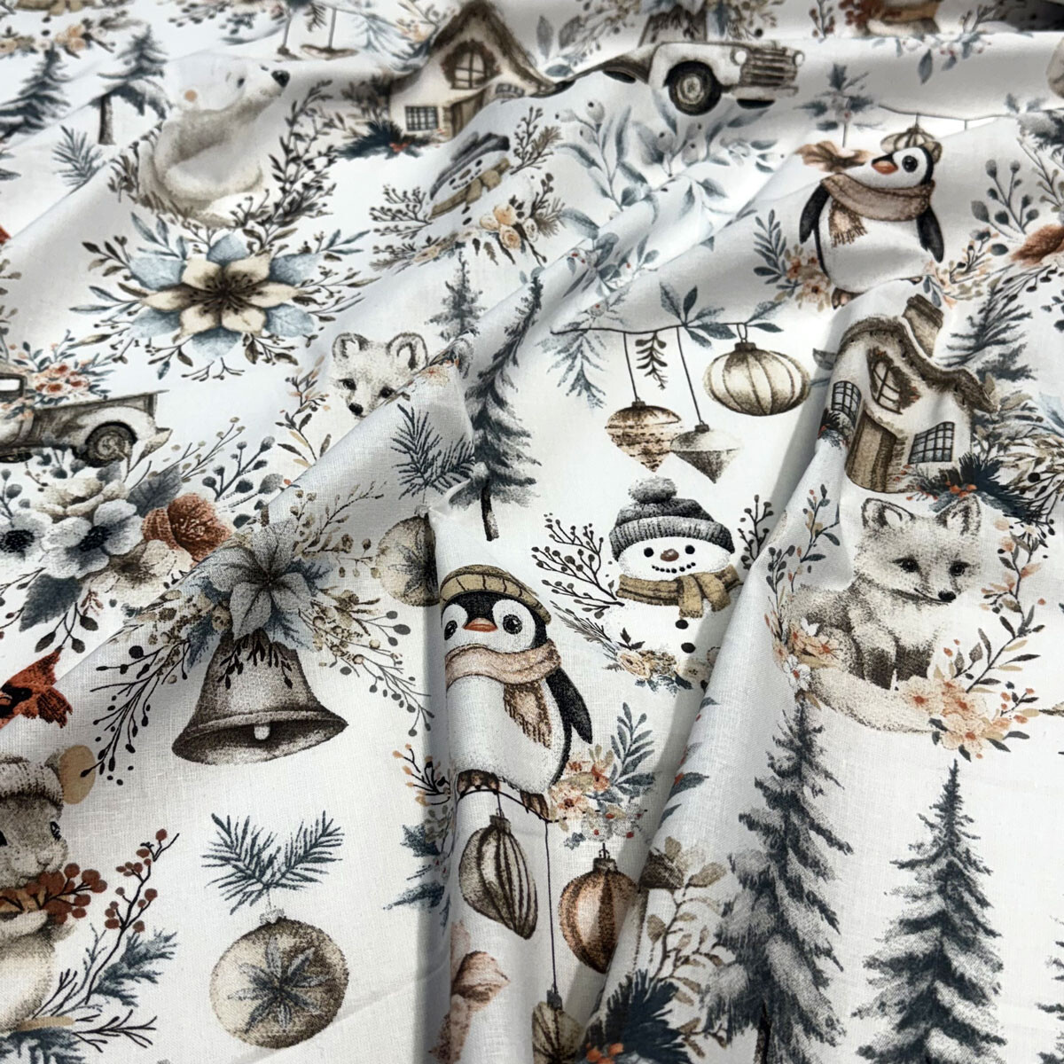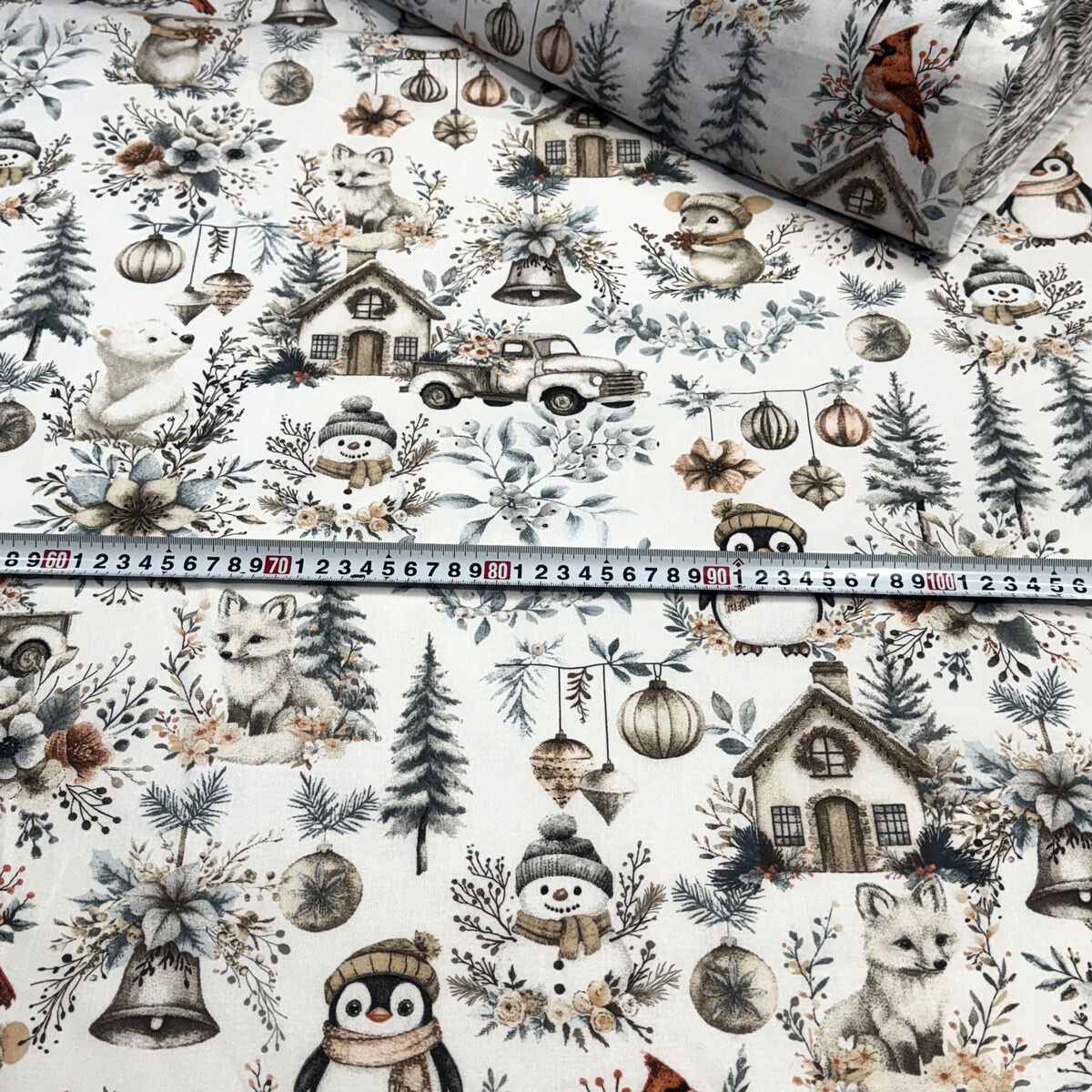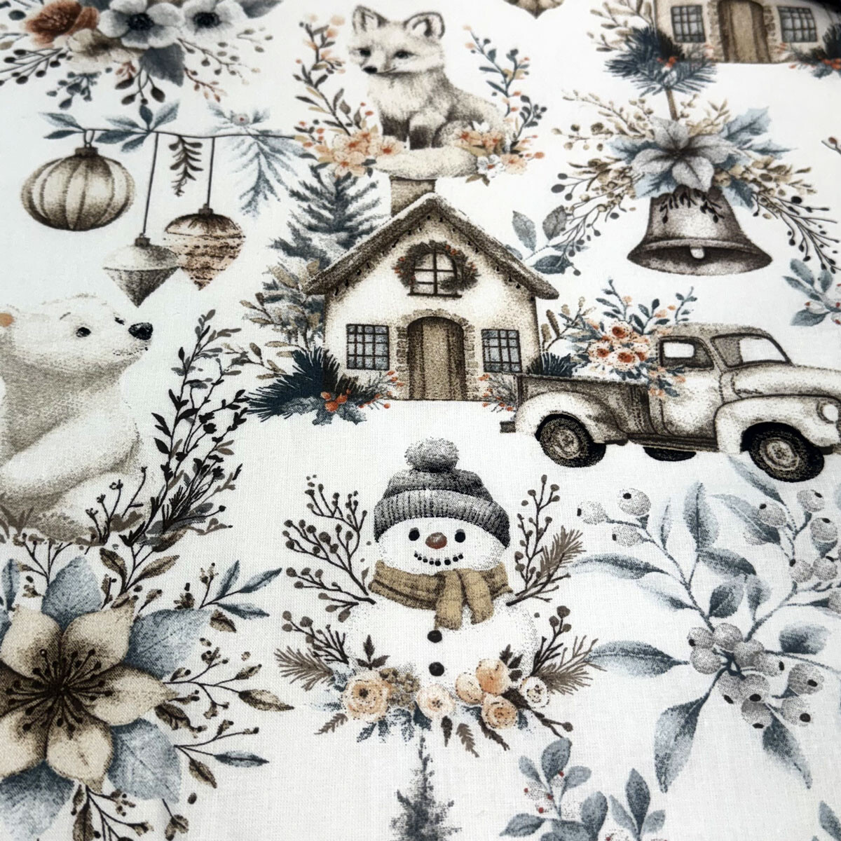 Decorative cotton fabric with a Christmas pattern brings festive joy to your home.