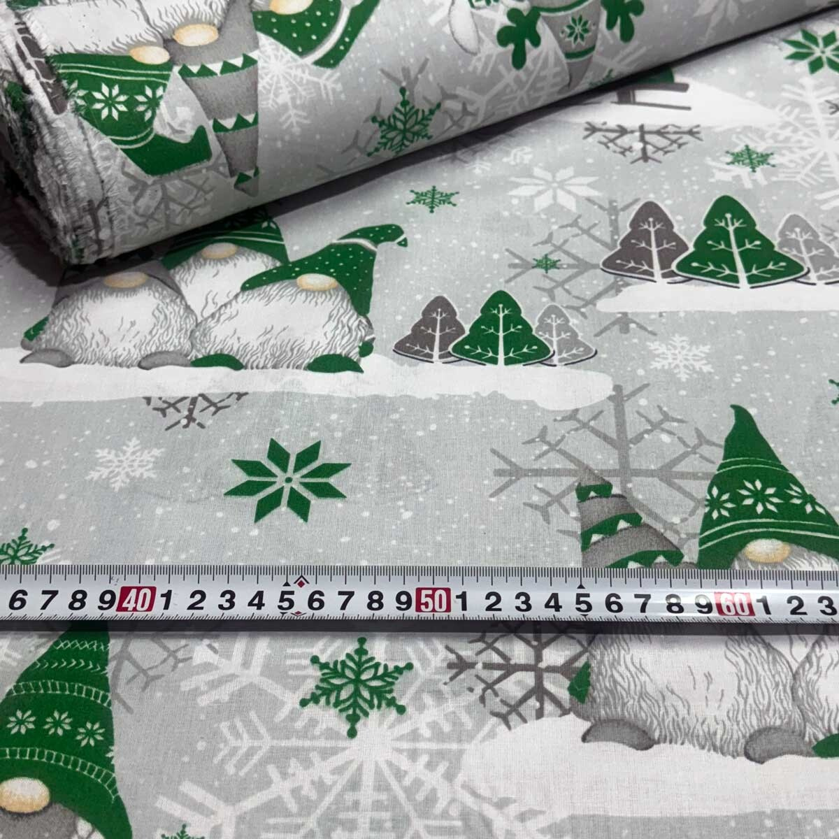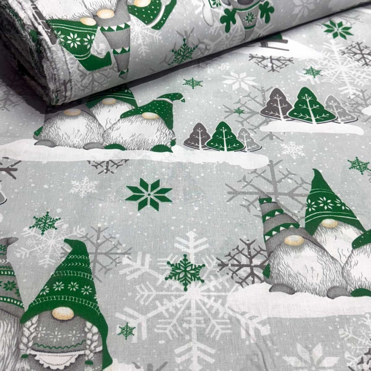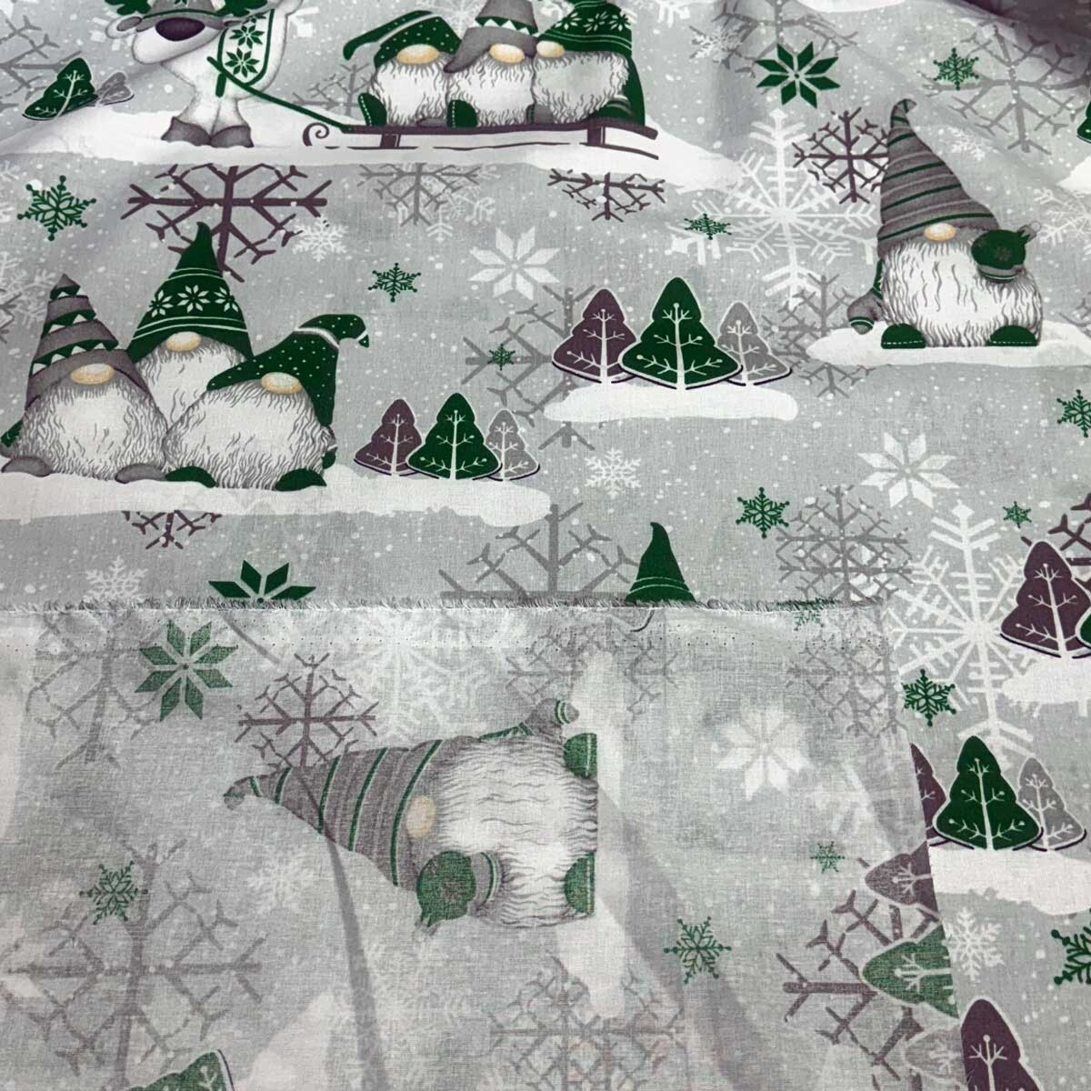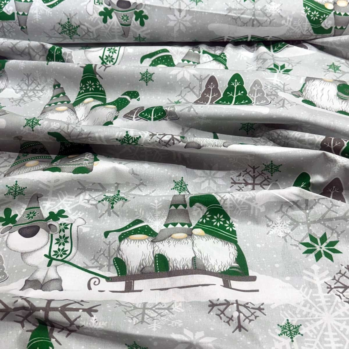 Description Christmas cotton fabric, by the meter, width 160 cm, Dark Elves.Green on Grey