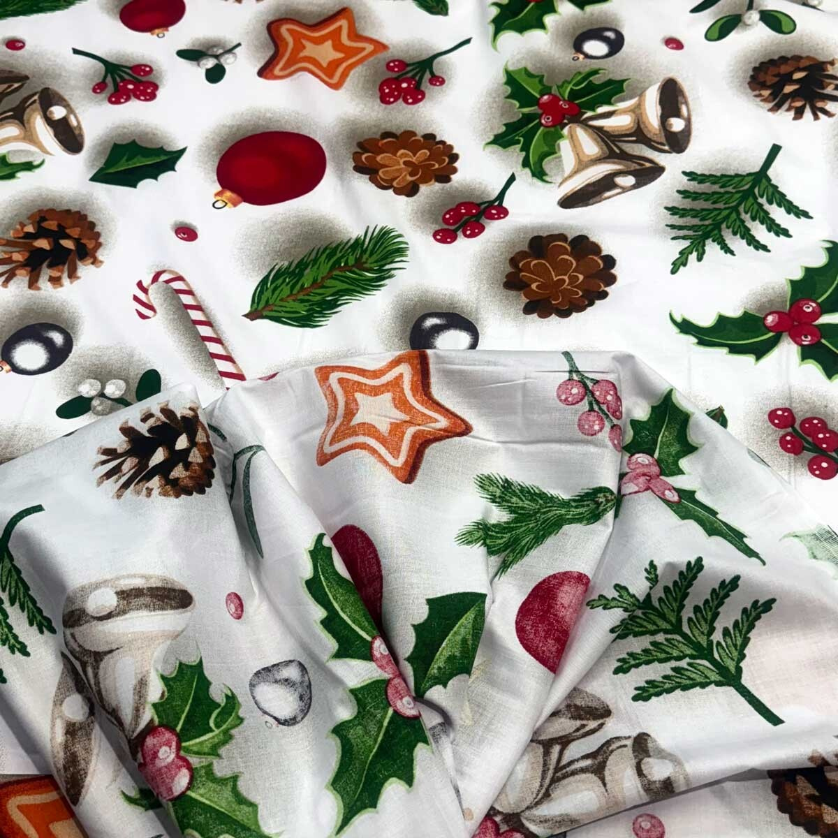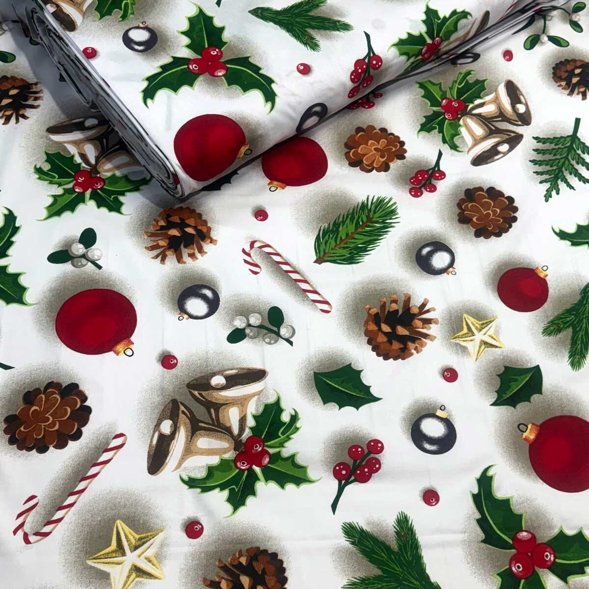 This fabric is refreshed with a beautiful Christmas pattern that adds holiday charm to any project. It is a great choice for making bed linens, sheets, curtains, tablecloths, home decorations, and other handmade products.