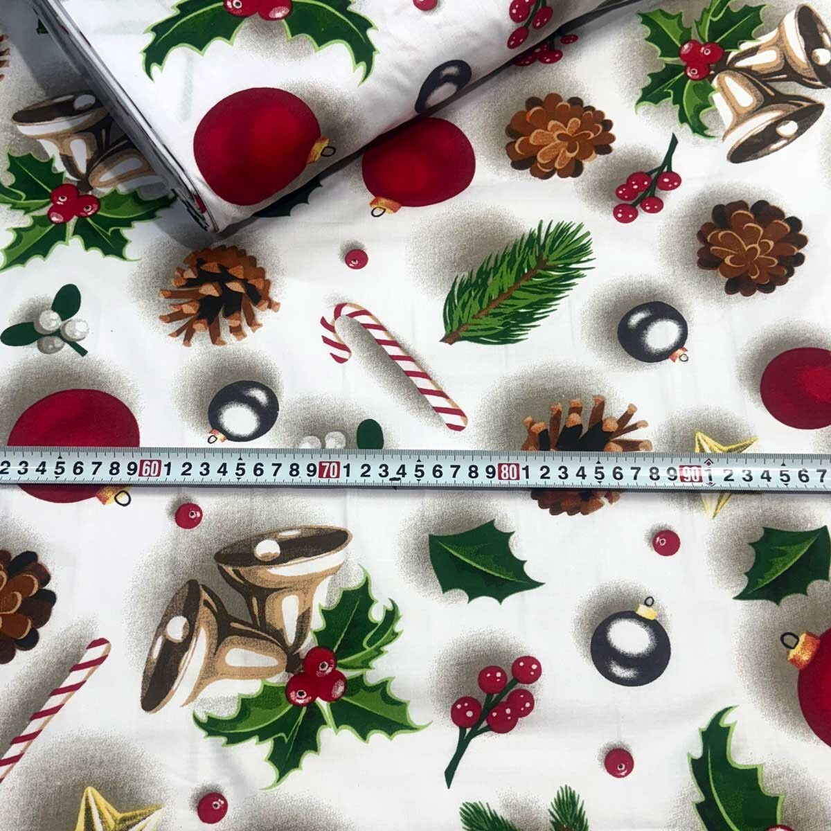 Decorative cotton fabric with a Christmas pattern brings festive joy to your home.