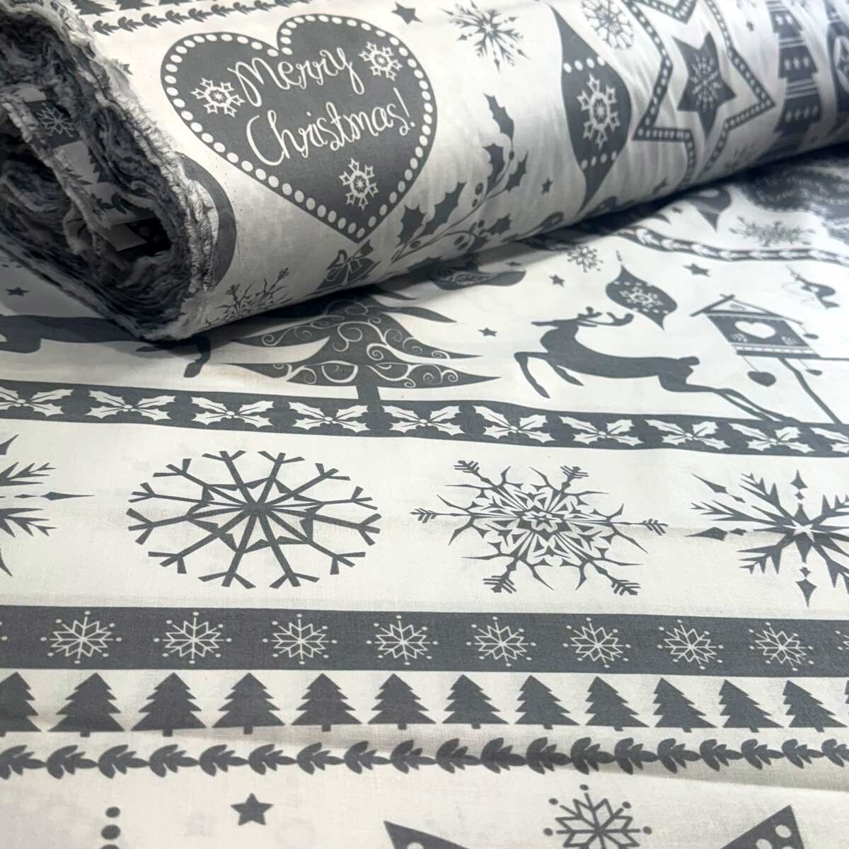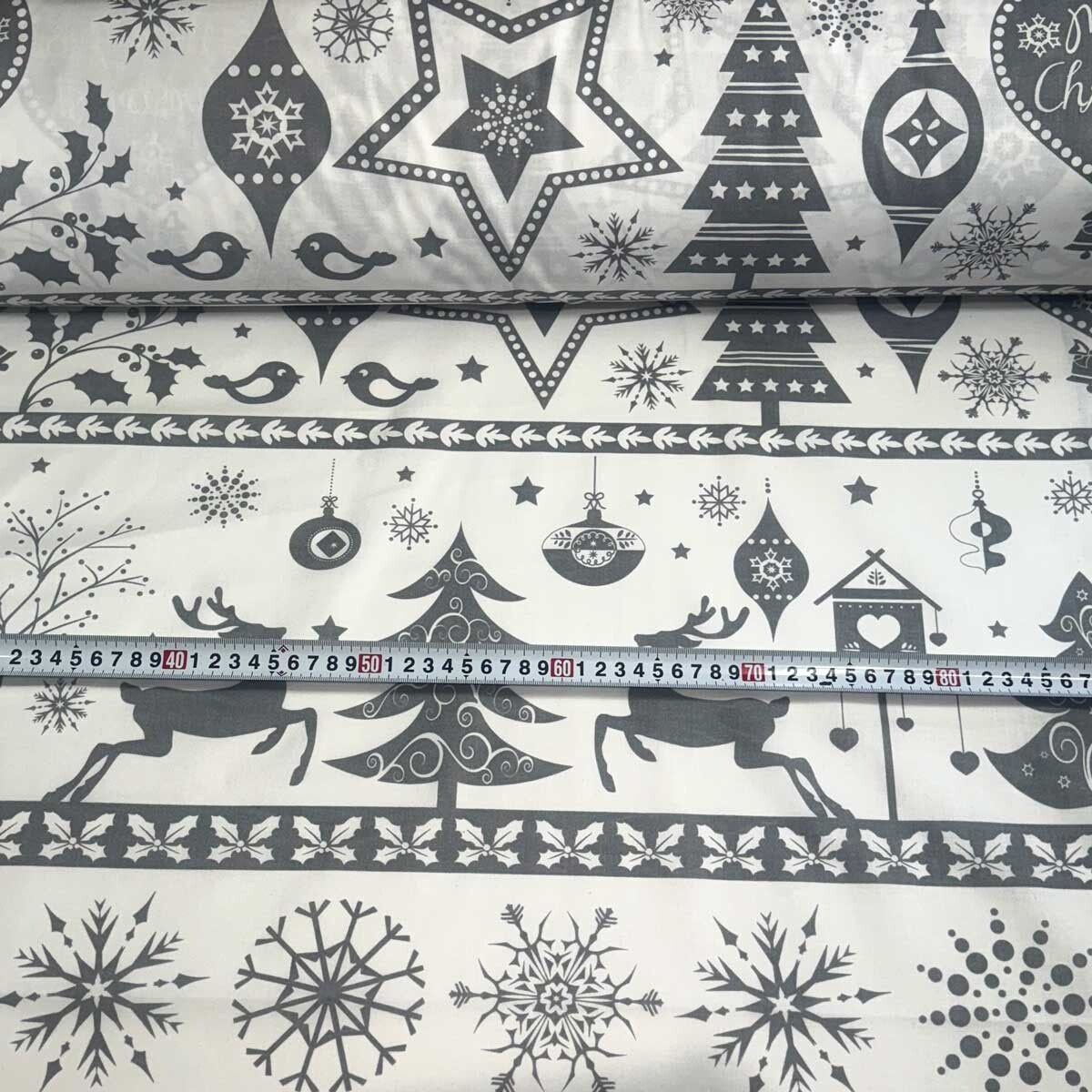 Decorative cotton fabric with a Christmas pattern brings festive joy to your home.
