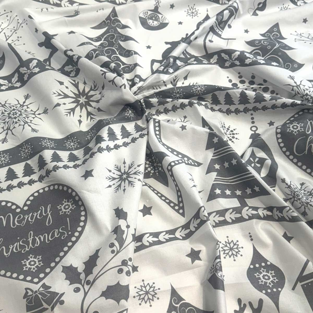 This fabric is refreshed with a beautiful Christmas pattern that adds holiday charm to any project. It is a great choice for making bed linens, sheets, curtains, tablecloths, home decorations, and other handmade products.