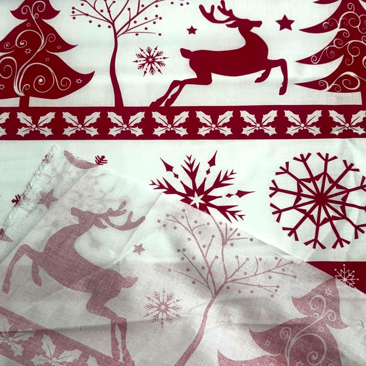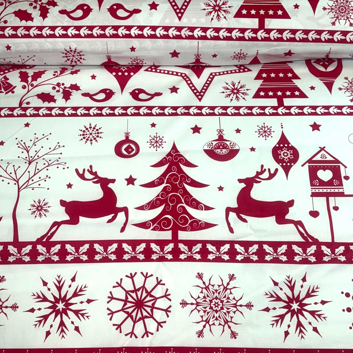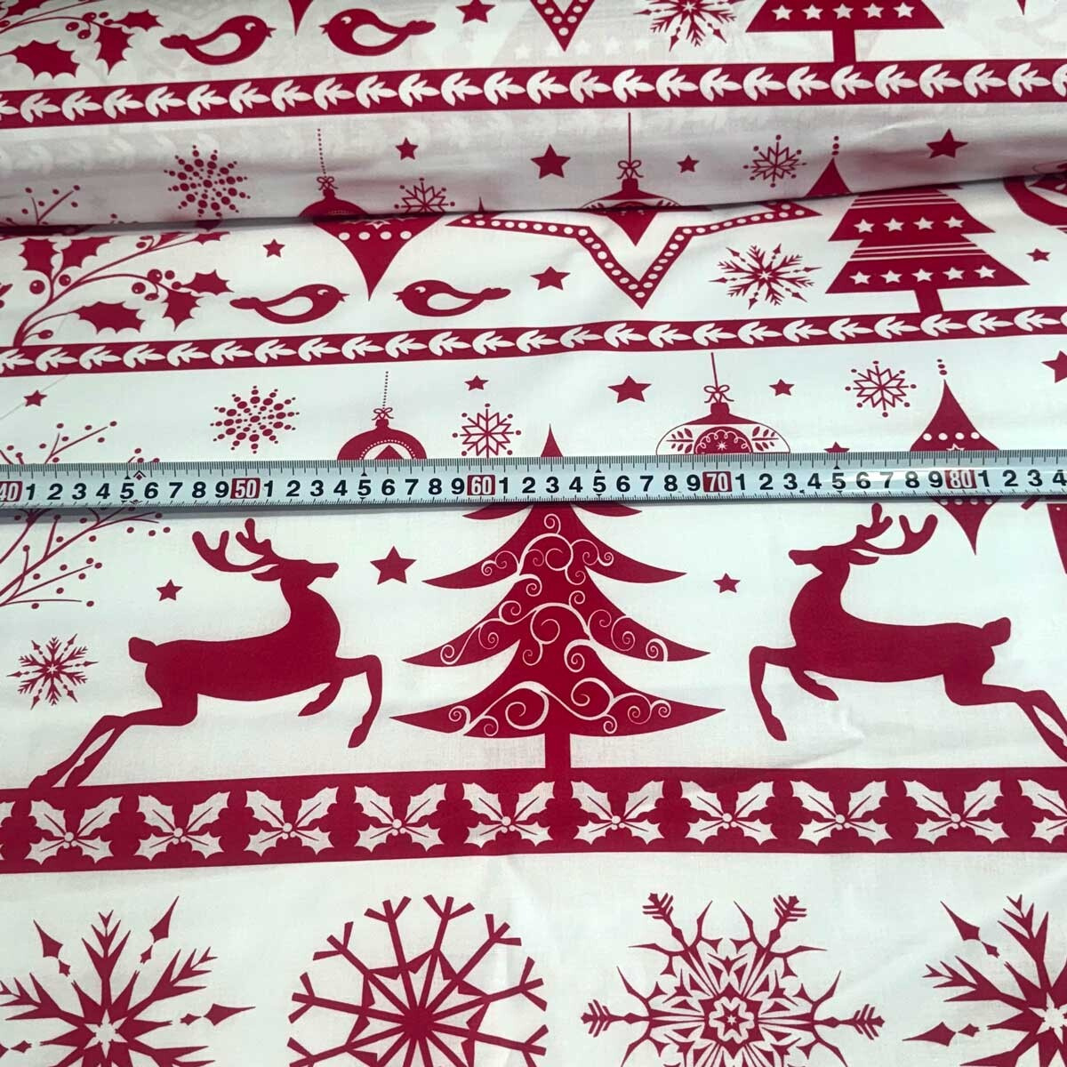 Decorative cotton fabric with a Christmas pattern brings festive joy to your home.
