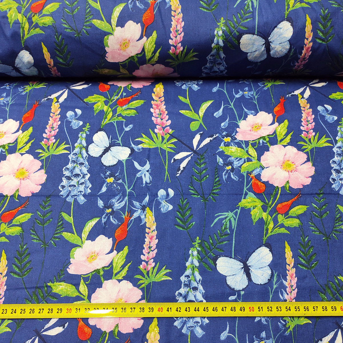 Description Cotton fabric 100% cotton, 125 g/m², width 160 cm, field on blue