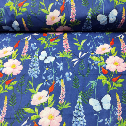 Cotton fabric 100% cotton, 125 g/m², width 160 cm, field on blue