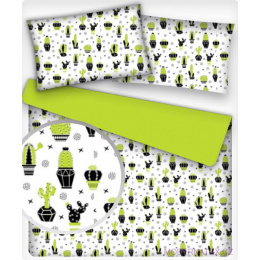 Description Cotton fabric 100% cotton, 125 g/m², width 160 cm, Green cacti on white