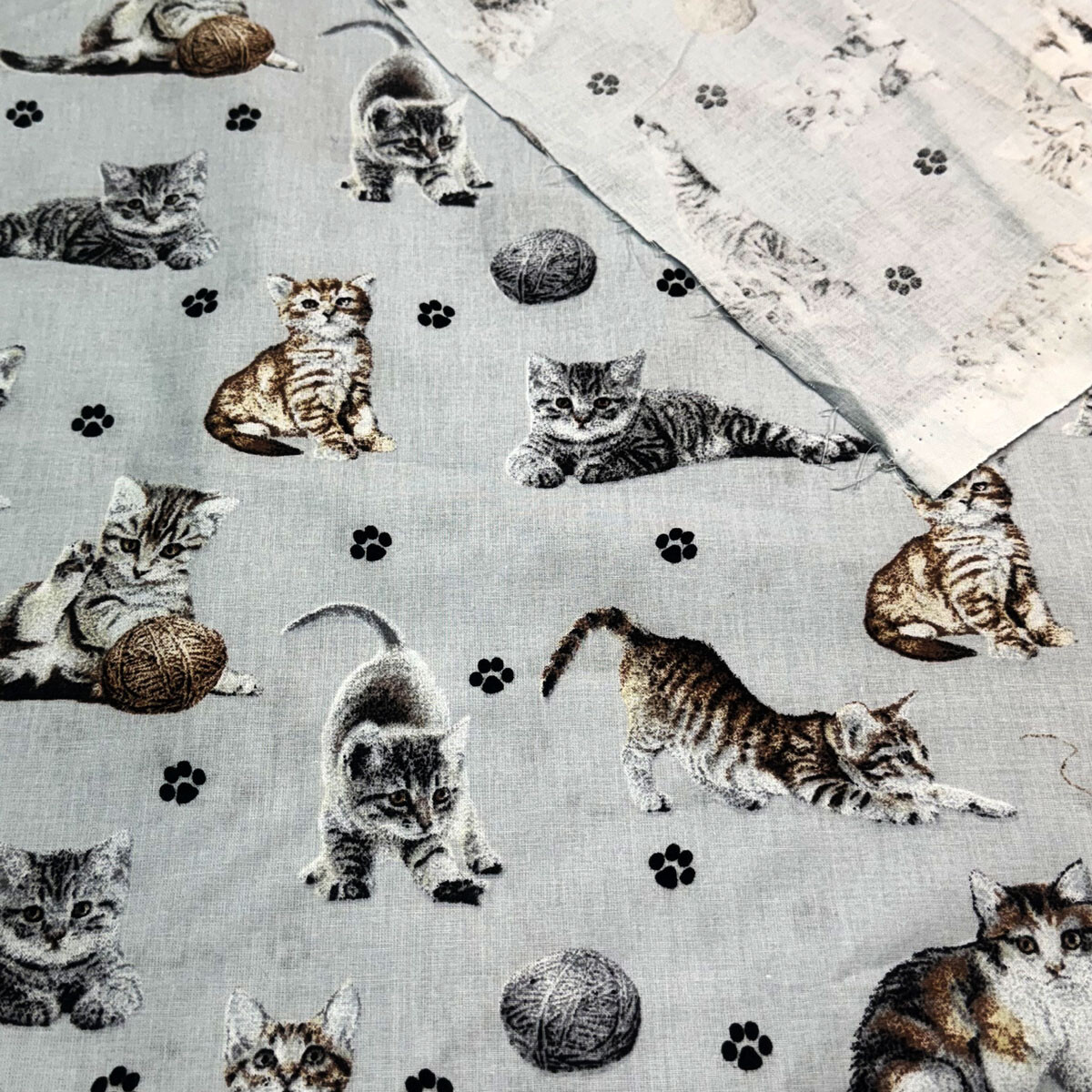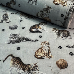 Cotton fabric, by the meter. Cats and a Ball of Yarn on St.Gray