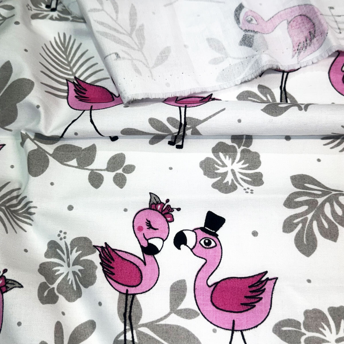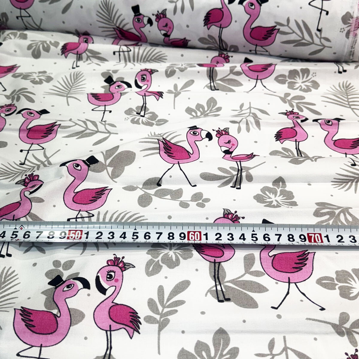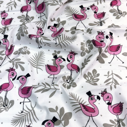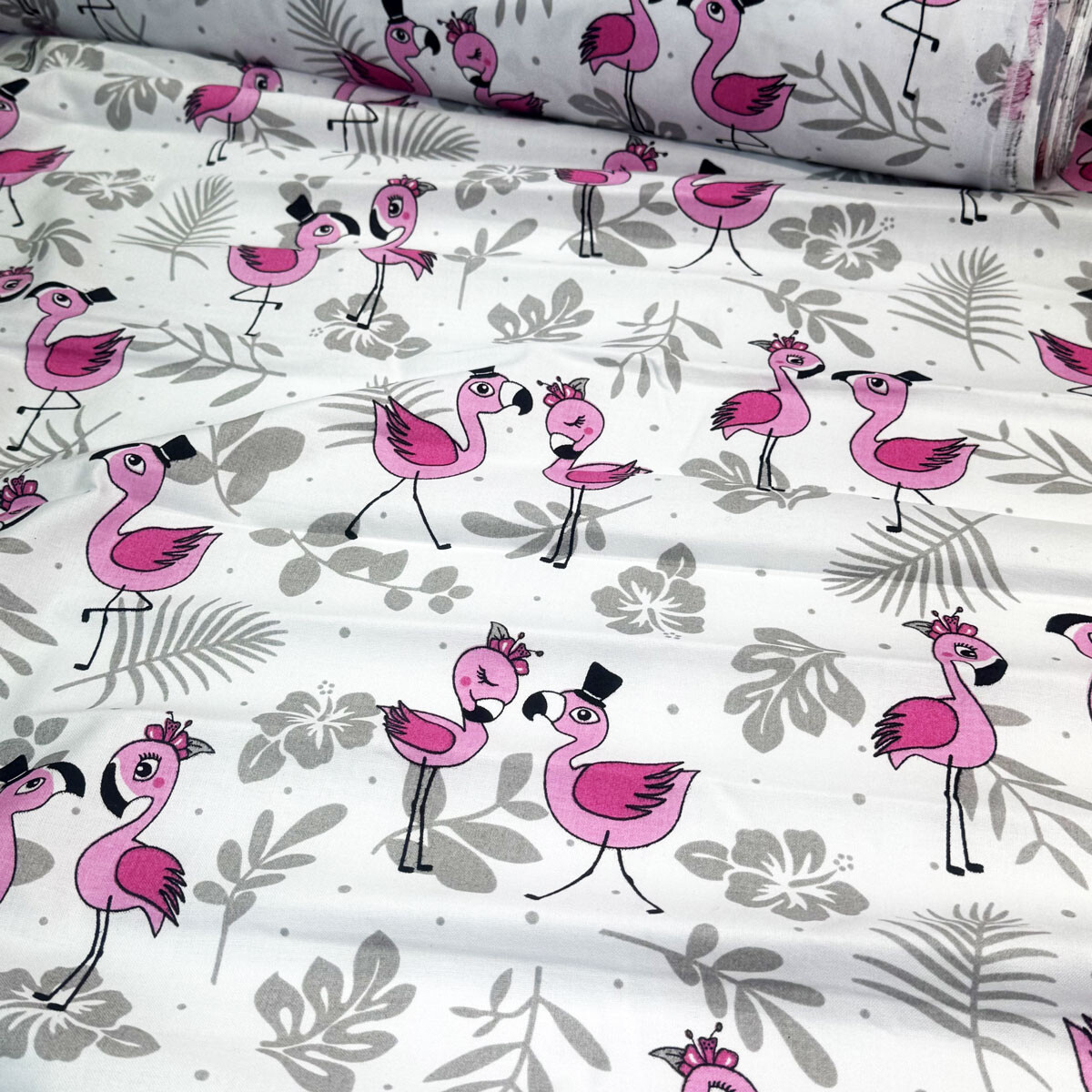 Description Cotton fabric, by the meter. Flamingos on the White