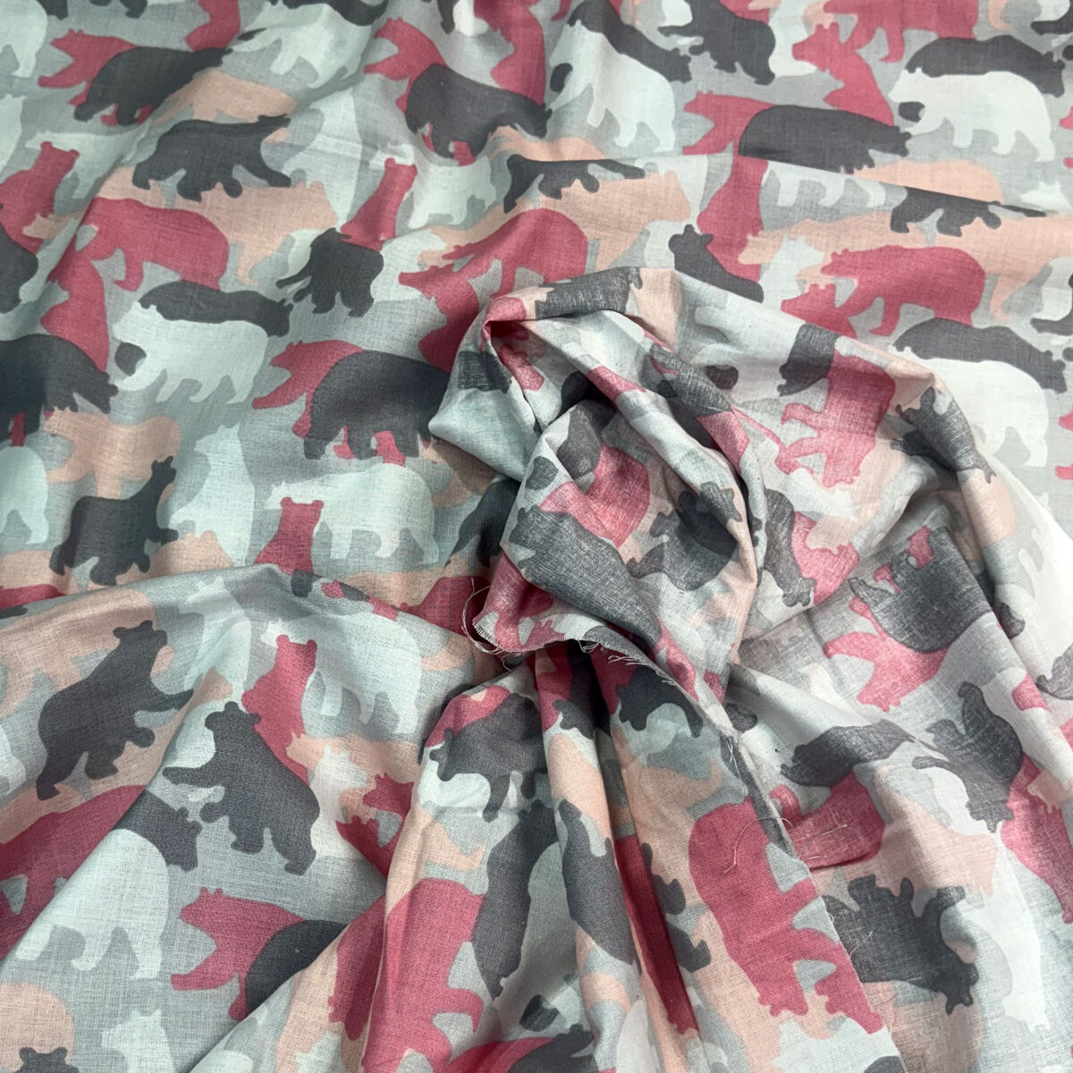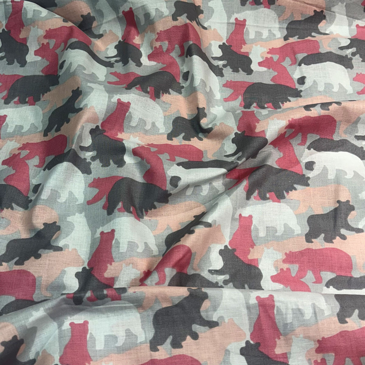 Description Cotton fabric, by the meter. Teddy Bears on the Gray