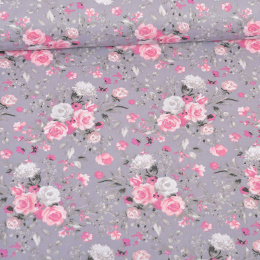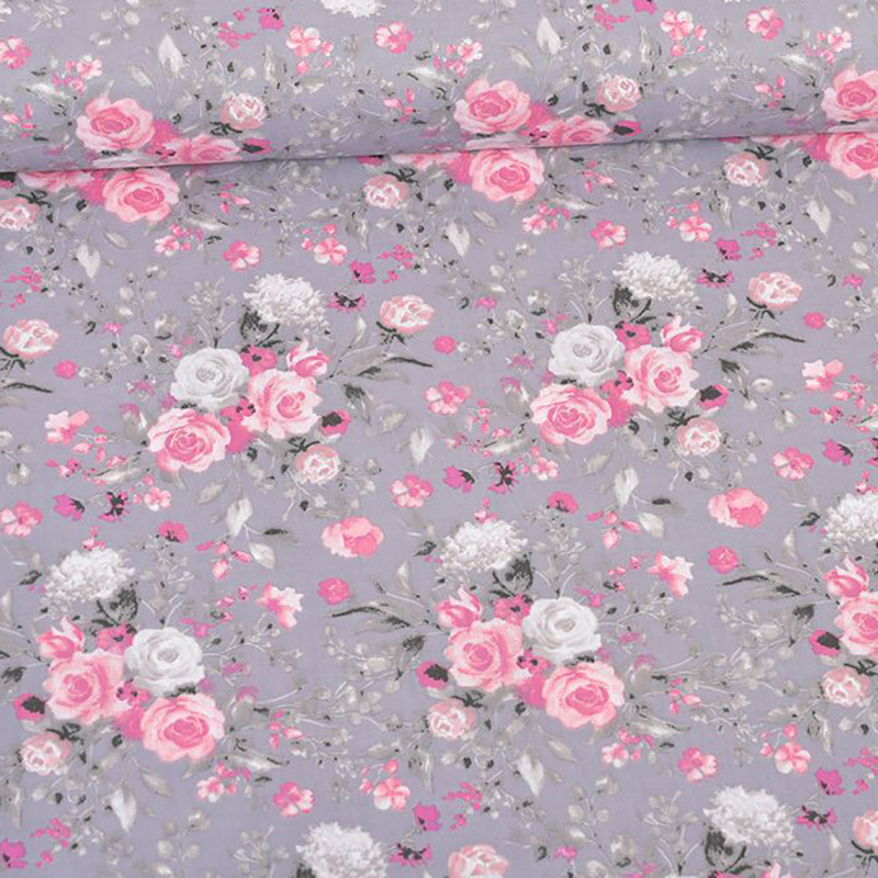 Description Cotton Fabric Flowers on Graphite
