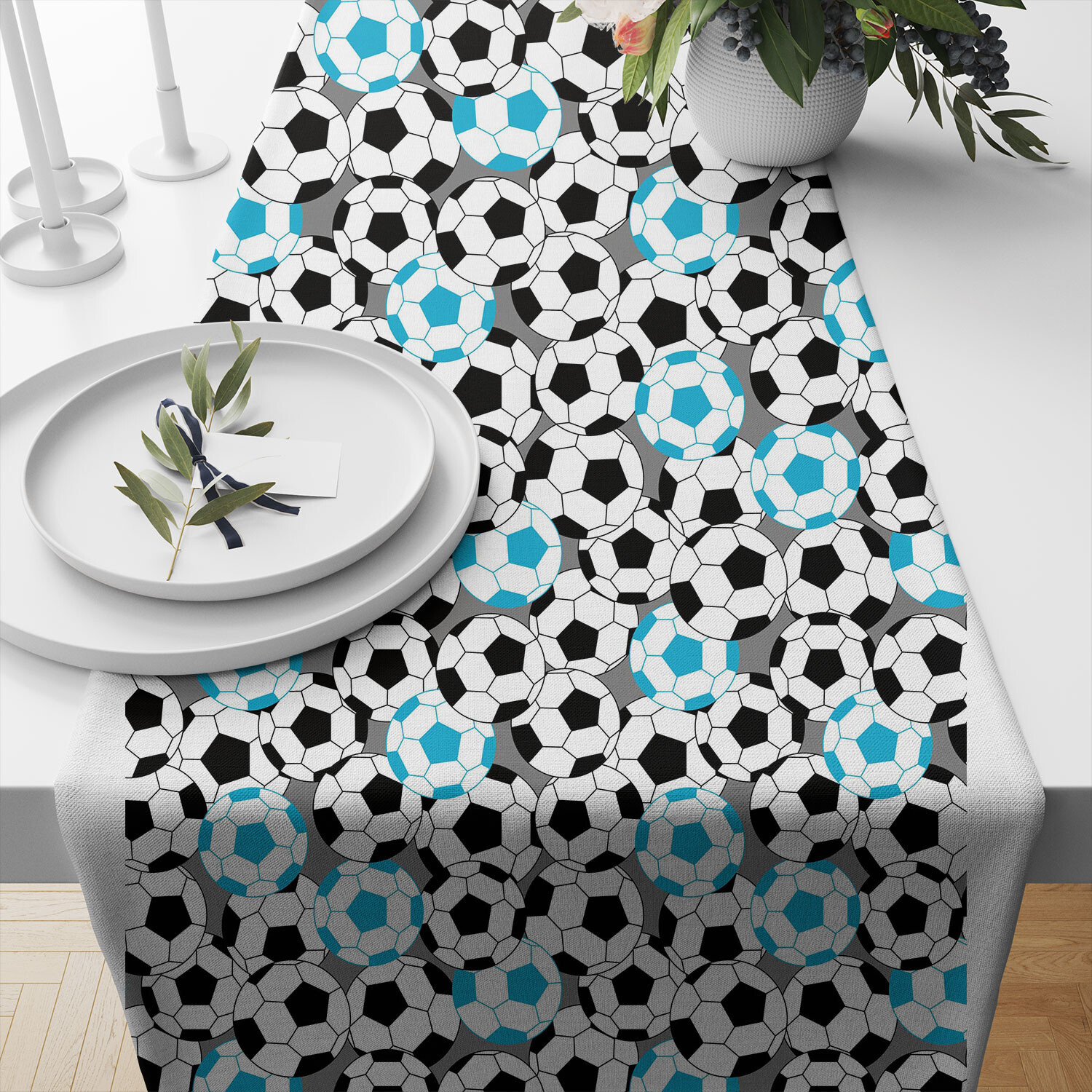 Description Cotton Fabric Football, Blue