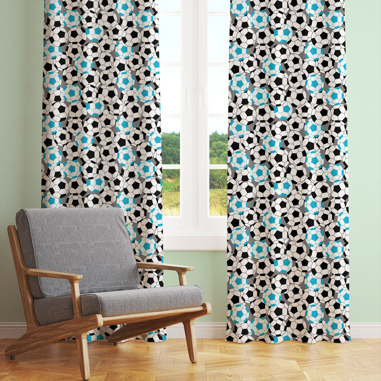 Cotton Fabric Football, Blue