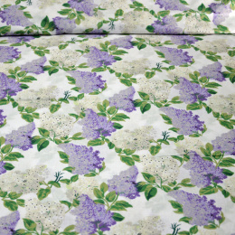 Cotton Fabric Lilac Branches Grey on White