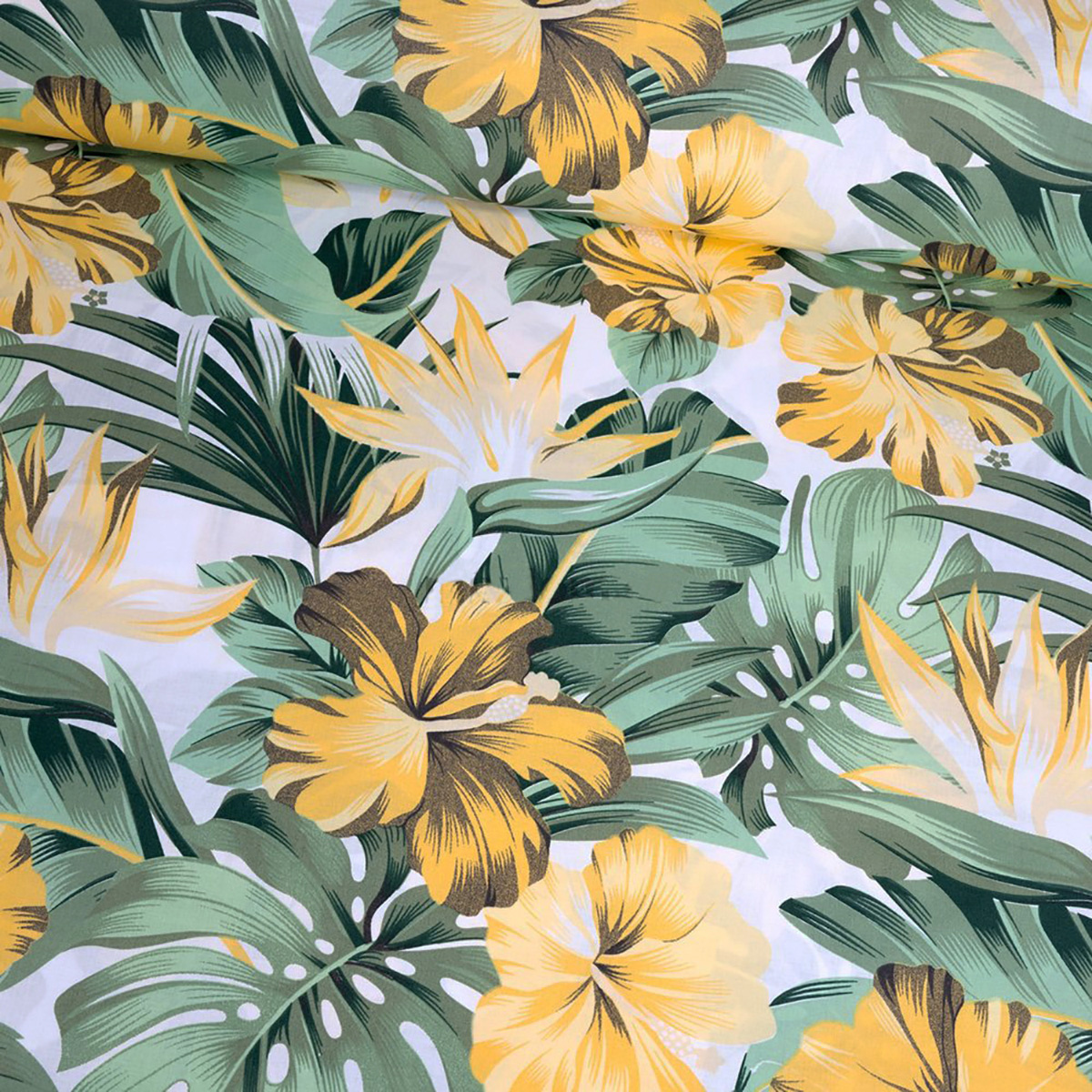 Cotton Fabric Monstera Green on White