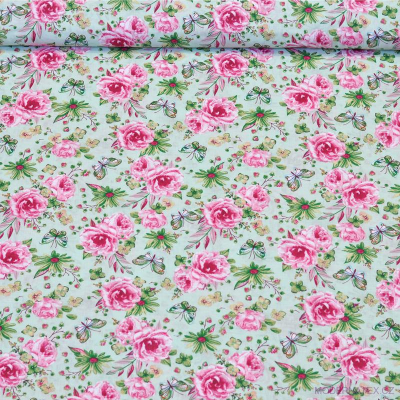 Description Cotton Fabric Small Rose Flowers on Green
