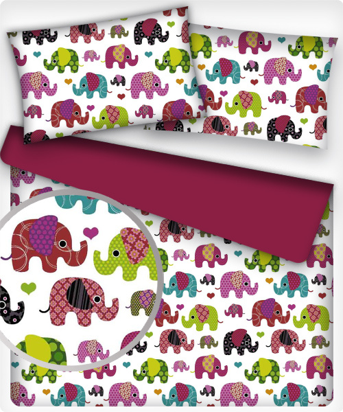 Description Cotton fabrics, by the meter. Amaranth Elephants on White