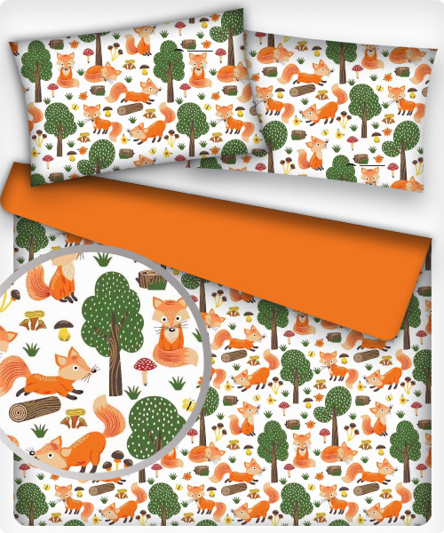 Description Cotton fabrics, by the meter. Foxes and Trees on St.Beige