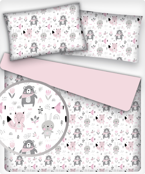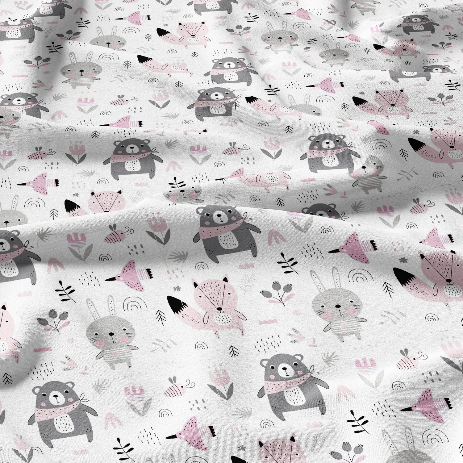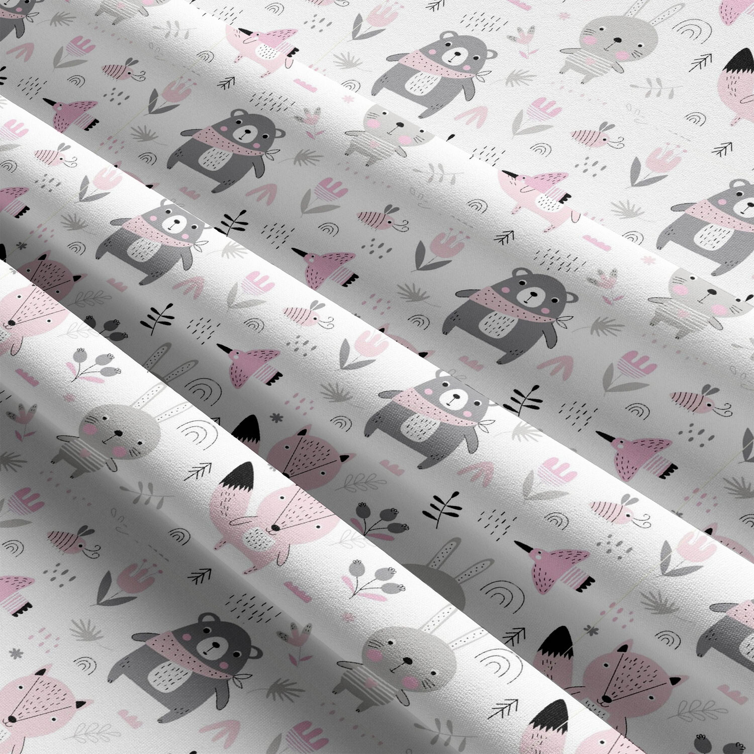 Description Cotton fabrics, by the meter. Pink Animals on White