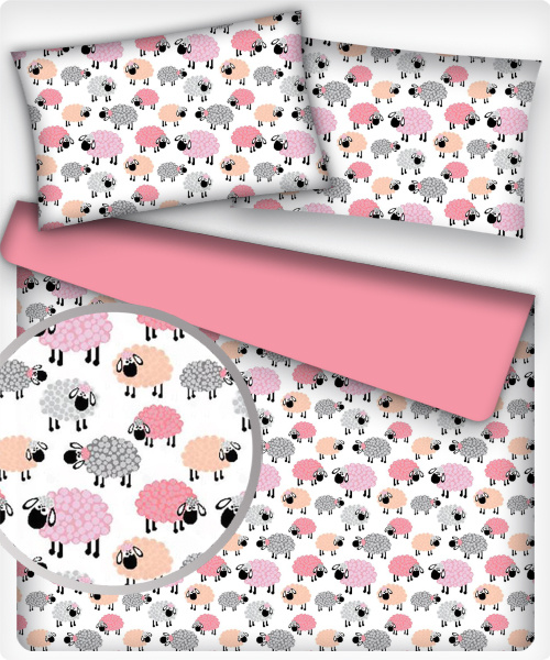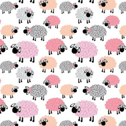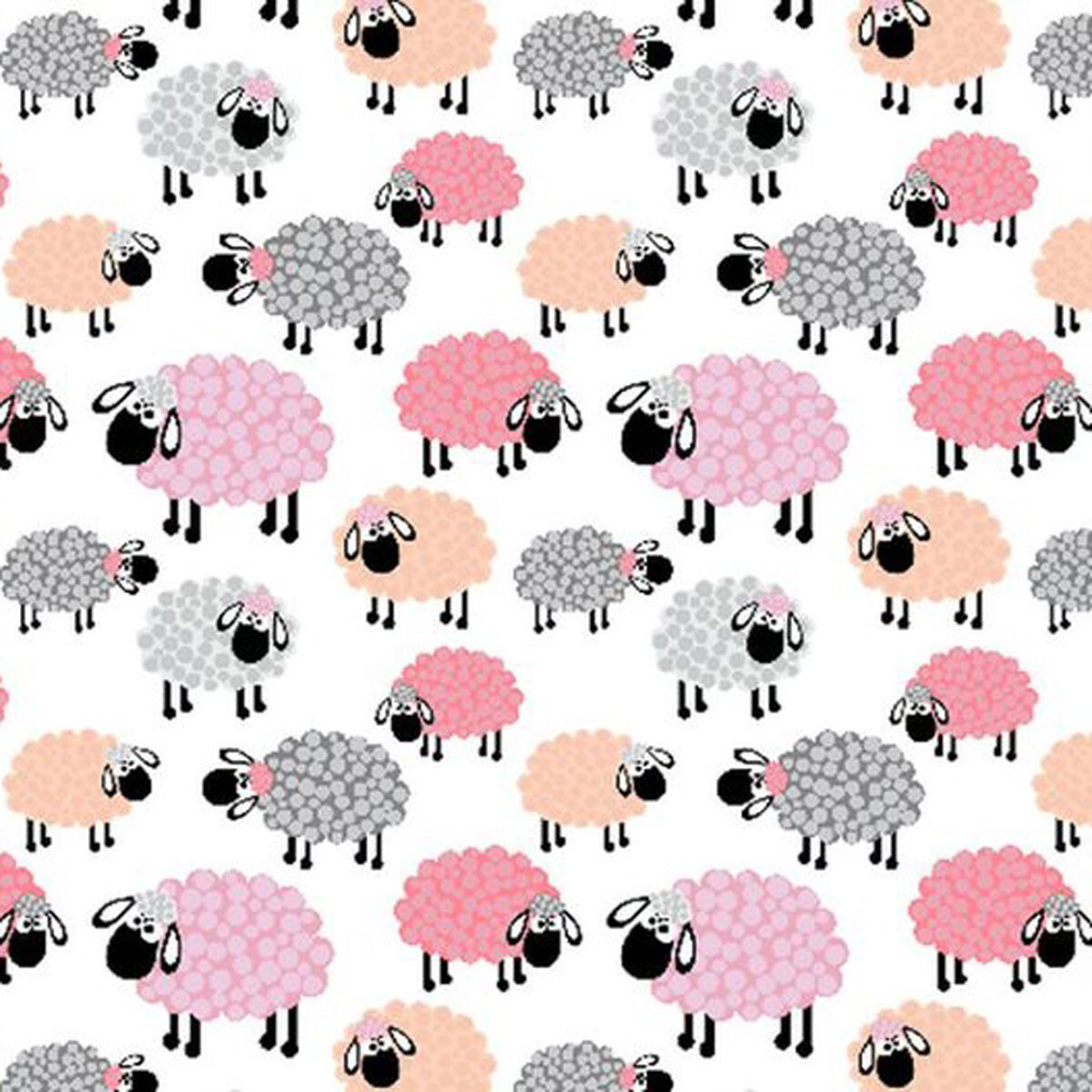 Description Cotton fabrics, by the meter. Pink Sheep on White