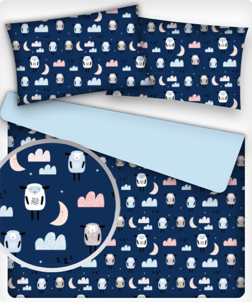 Description Cotton fabrics, by the meter. Sheep and Night on Granátový