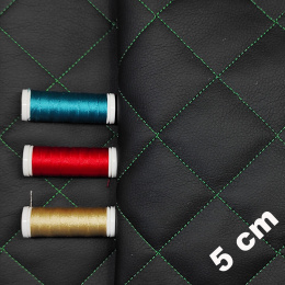 Eco-leather 5x5 color Black quilted with Green threads 1.45 m x 0.5 m