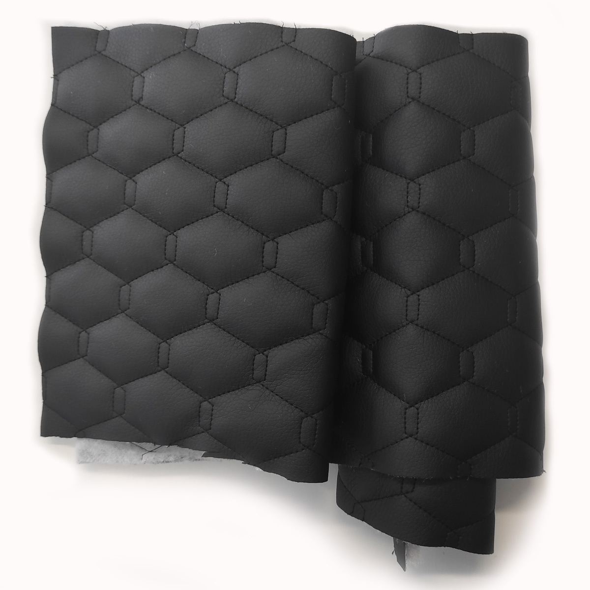Description Eco-leather GEO color black quilted with black threads, faux leather by the meter