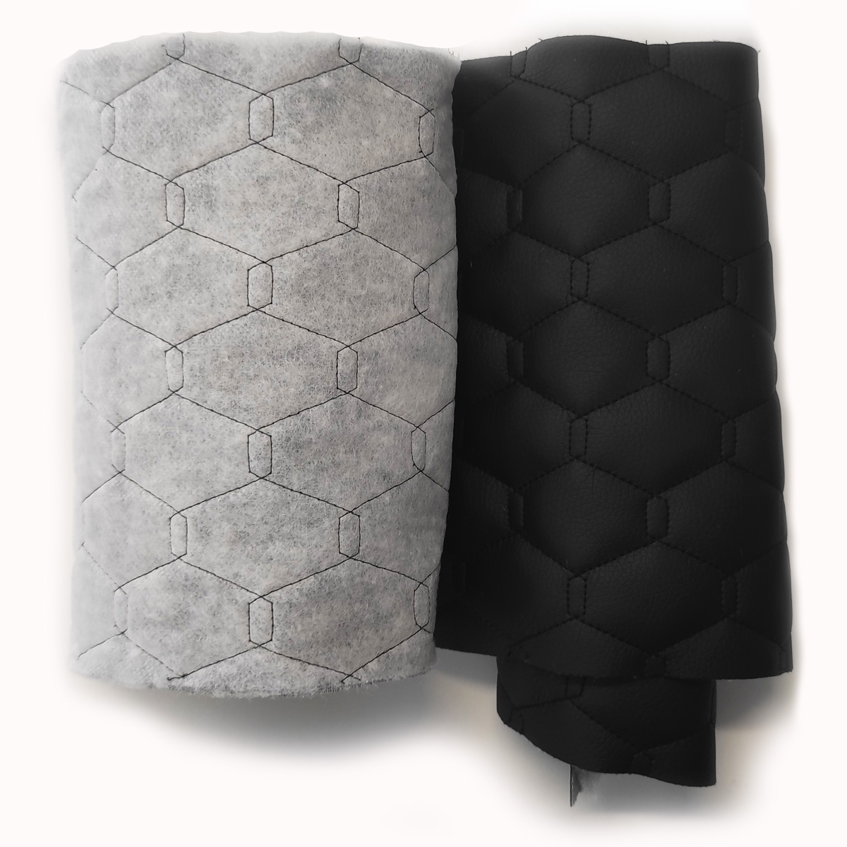 Material Description.Quilted eco-leather 5x5 is a modern synthetic upholstery material that combines the aesthetics of genuine leather with high durability and easy maintenance. The top layer of polyurethane (PU) ensures a pleasant touch and moisture resistance, while the underside of polyester knit provides elasticity and stability. Thanks to the regular 5x5 cm pattern created by stitching technology, the fabric is both decorative and practical.