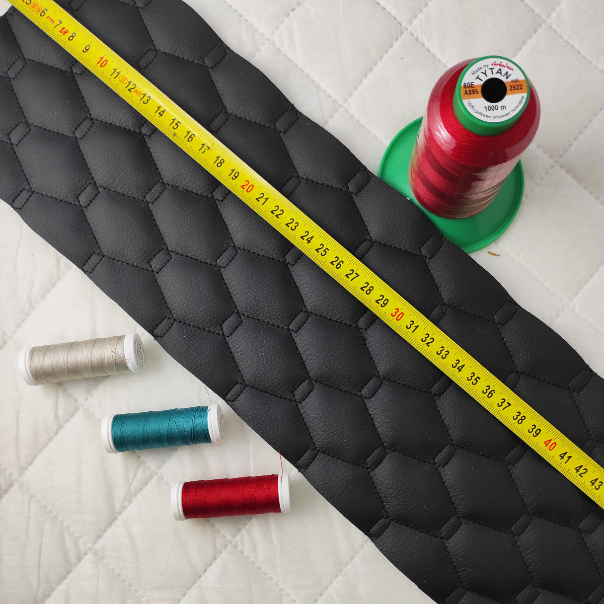 Eco leather quilted with threads, faux leather by the meterRead more