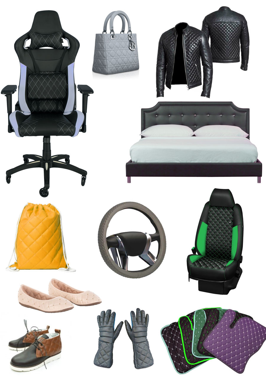 Material Description.Quilted eco-leather 5x5 is a modern synthetic upholstery material that combines the aesthetics of genuine leather with high durability and easy maintenance. The top layer of polyurethane (PU) ensures a pleasant touch and moisture resistance, while the underside of polyester knit provides elasticity and stability. Thanks to the regular 5x5 cm pattern created by stitching technology, the fabric is both decorative and practical.
