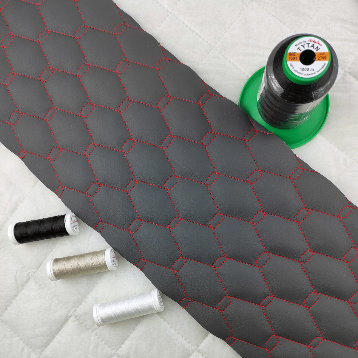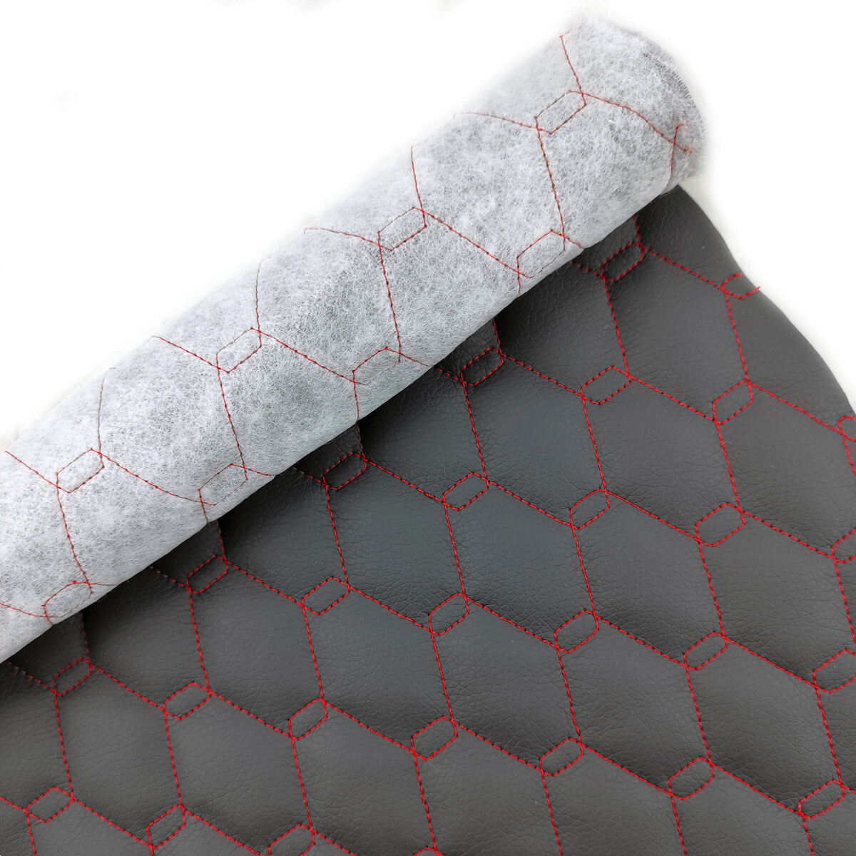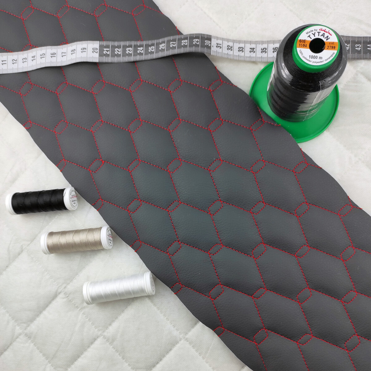 Description Eco-leather GEO color Graphite quilted with Red threads, faux leather by the meter,
