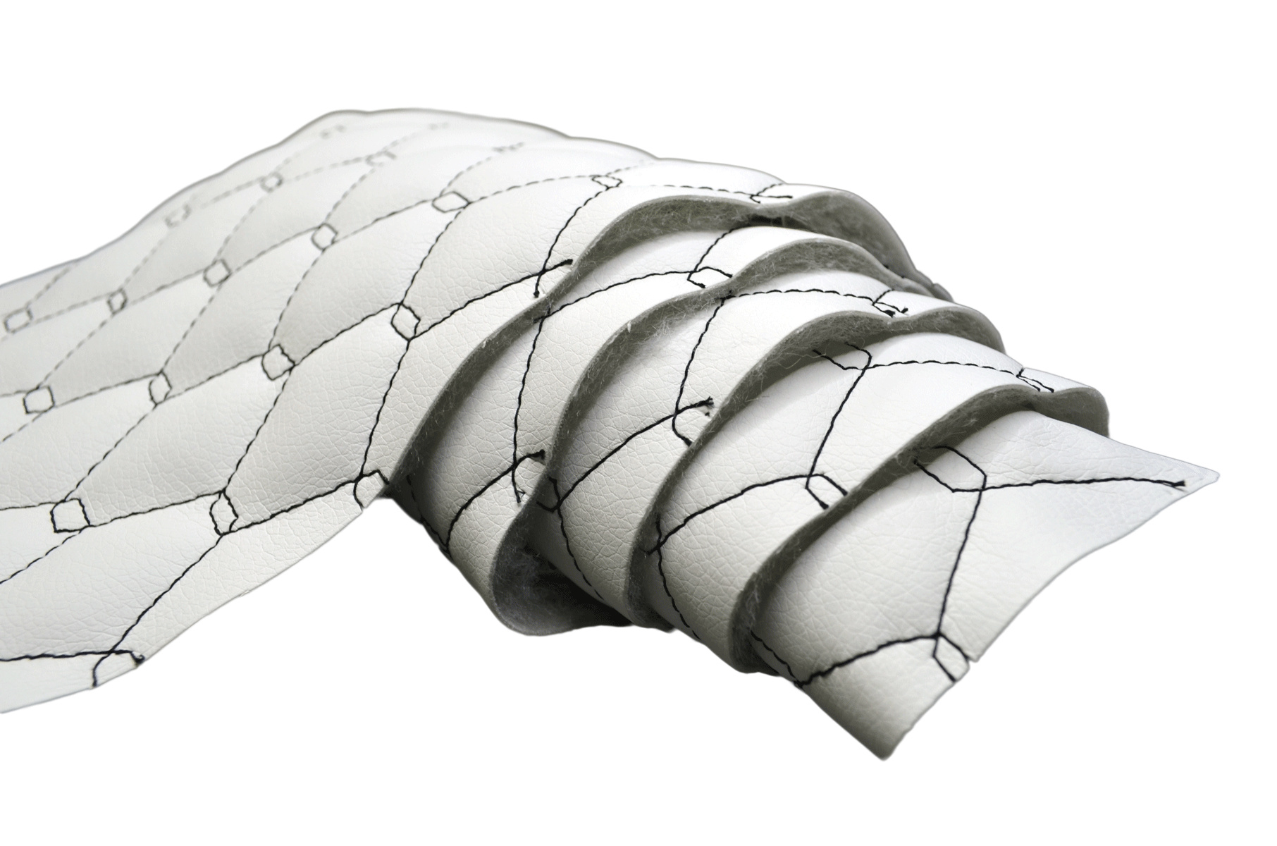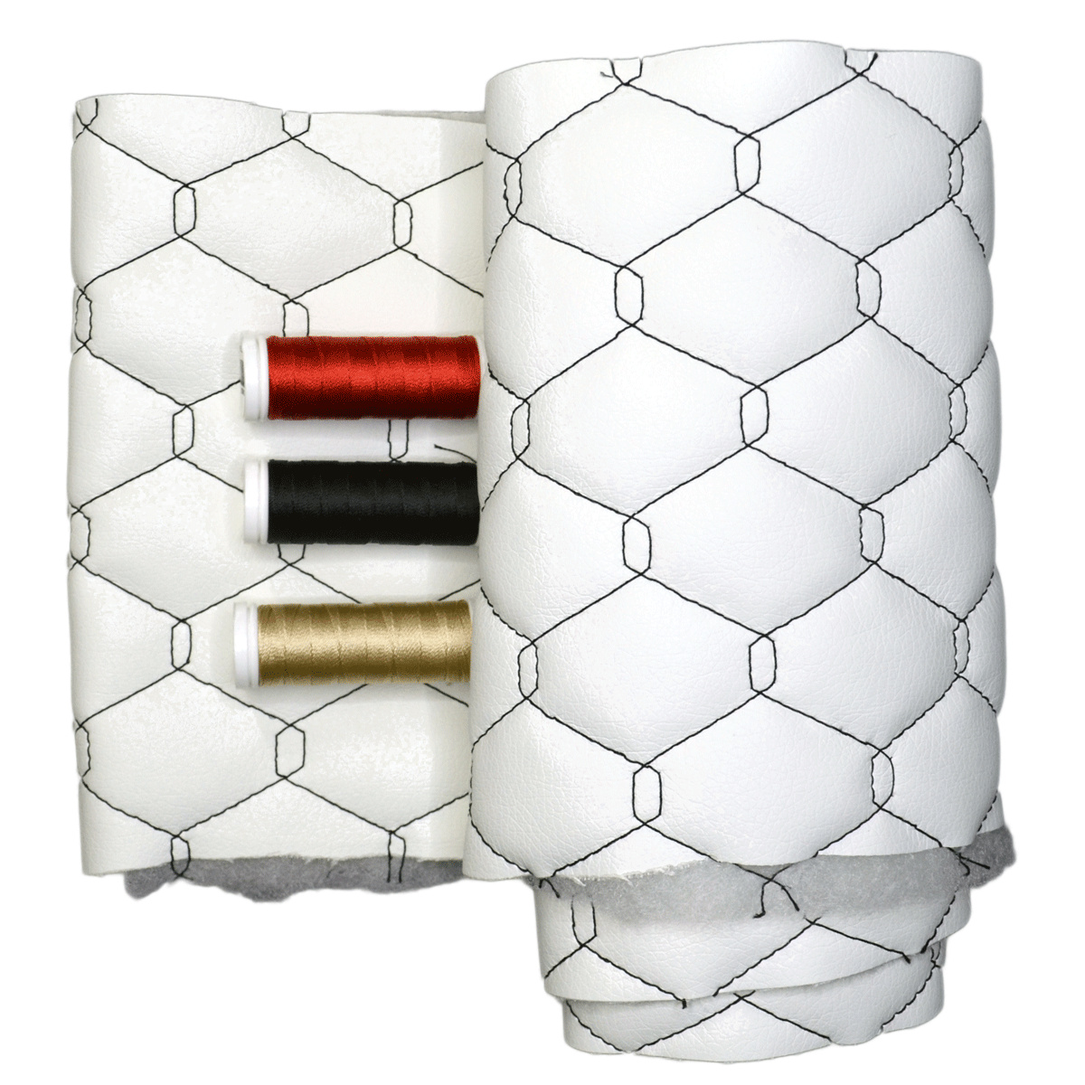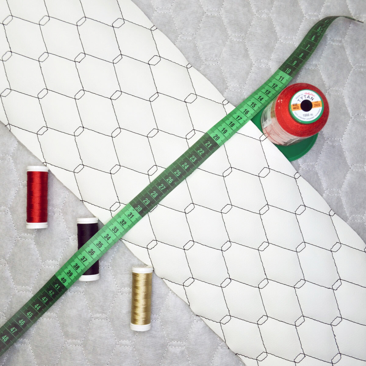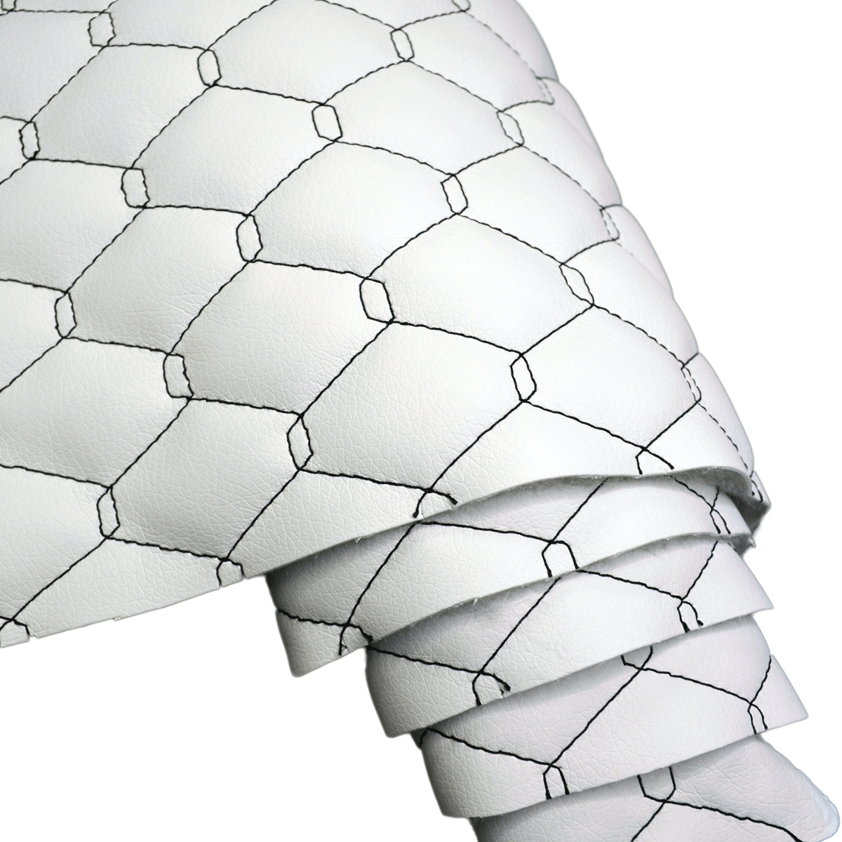 Material Description.Quilted eco-leather 5x5 is a modern synthetic upholstery material that combines the aesthetics of genuine leather with high durability and easy maintenance. The top layer of polyurethane (PU) ensures a pleasant touch and moisture resistance, while the underside of polyester knit provides elasticity and stability. Thanks to the regular 5x5 cm pattern created by stitching technology, the fabric is both decorative and practical.