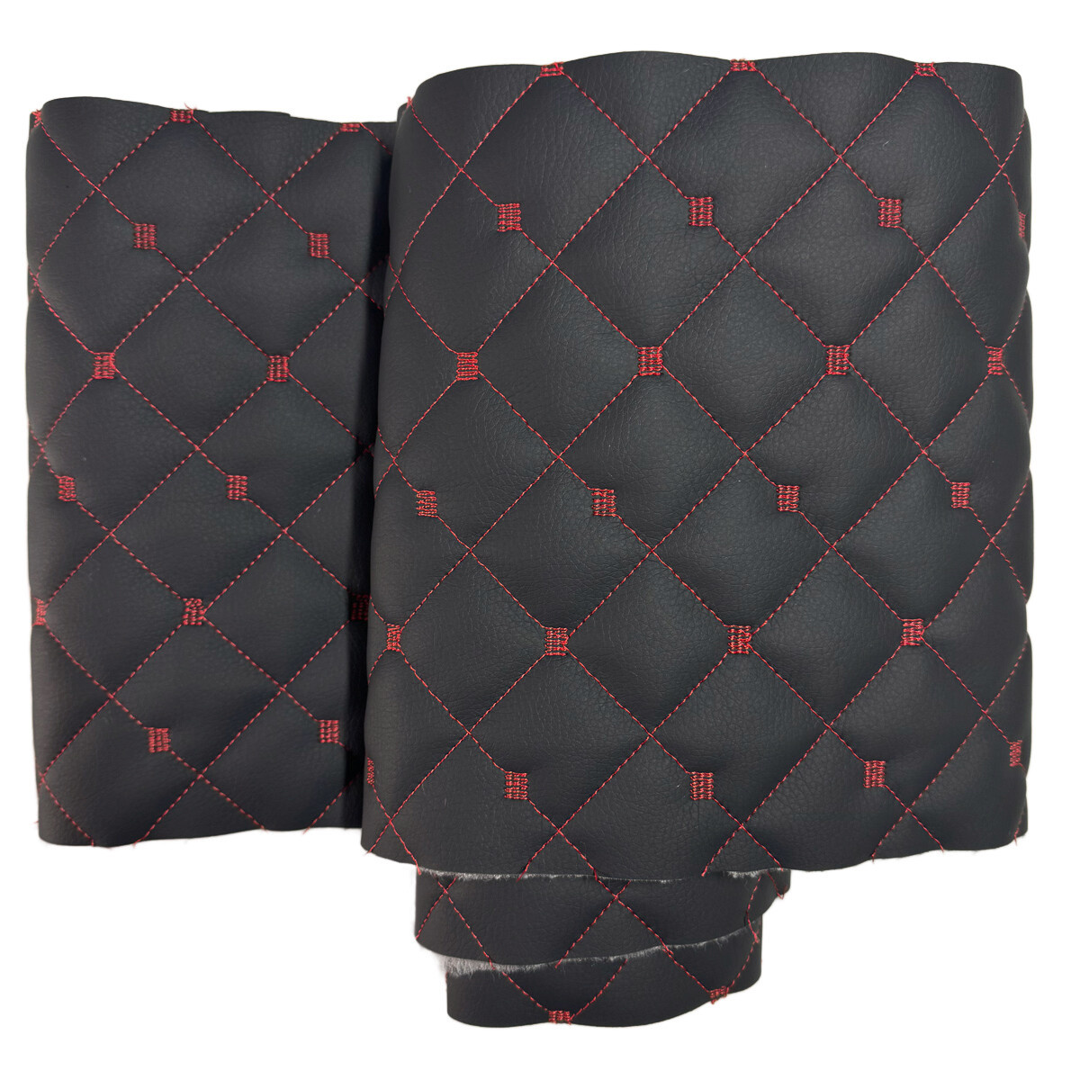 Material Description.Quilted eco-leather 3x3 is a modern synthetic upholstery material that combines the aesthetics of genuine leather with high durability and easy maintenance. The top layer of polyurethane (PU) ensures a pleasant touch and moisture resistance, while the underside of polyester knit provides elasticity and stability. Thanks to the regular 3x3 cm pattern created by stitching technology, the fabric is both decorative and practical.