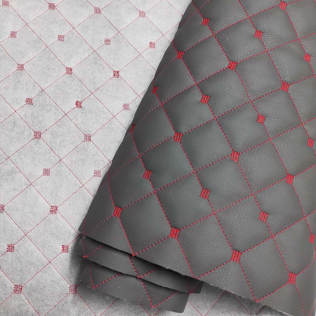 Material Description.Quilted eco-leather 3x3 is a modern synthetic upholstery material that combines the aesthetics of genuine leather with high durability and easy maintenance. The top layer of polyurethane (PU) ensures a pleasant touch and moisture resistance, while the underside of polyester knit provides elasticity and stability. Thanks to the regular 3x3 cm pattern created by stitching technology, the fabric is both decorative and practical.