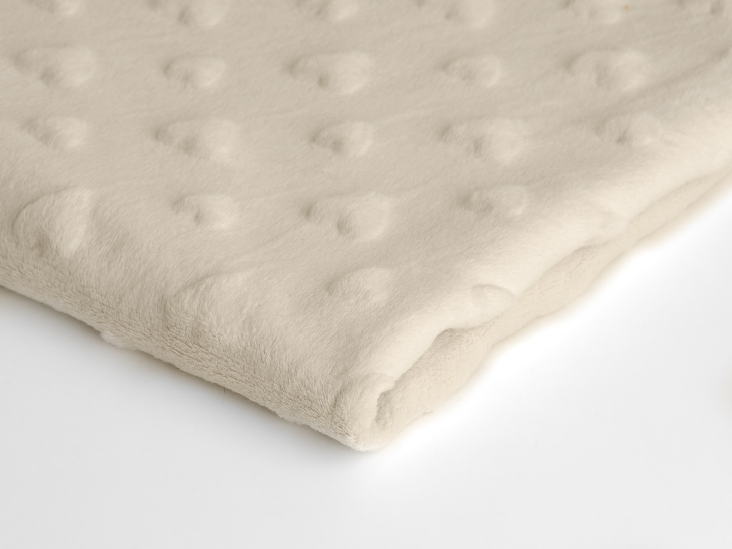 Minky fabric with an embossed heart pattern is a great choice for anyone looking for a luxuriously soft, warm, and easy-to-maintain material. Thanks to its universal use and certified safety, it is ideal for both home decorations and products for the little ones.
