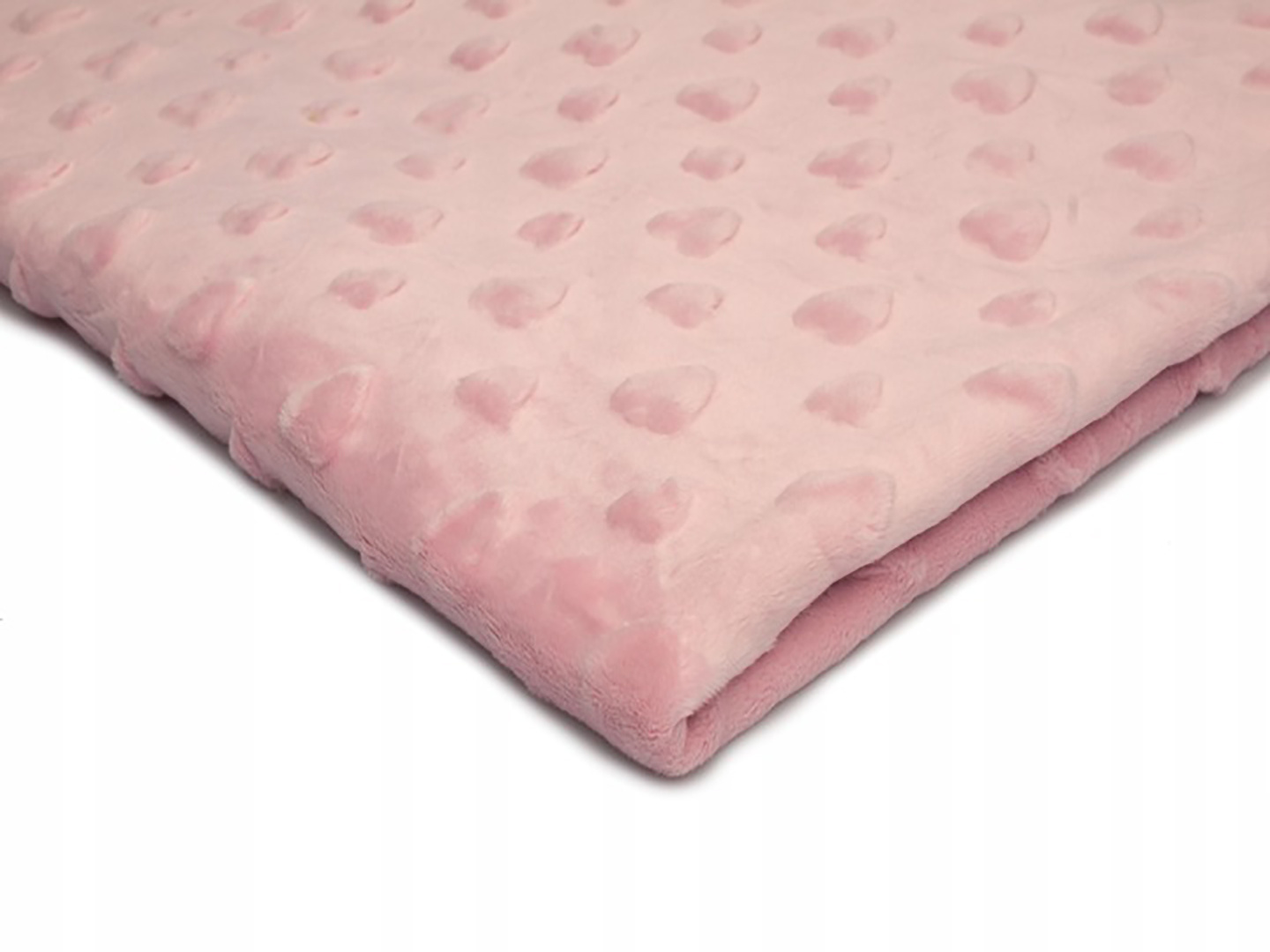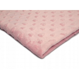 Material description.Minky is a soft and exceptionally pleasant to the touch microfleece material with an embossed heart pattern. Thanks to its velvety texture and high warmth, it is an ideal choice for sewing quilts, blankets, pillow covers, and other home accessories. The fabric does not shine, does not pill, and does not need ironing, ensuring easy maintenance and long durability.