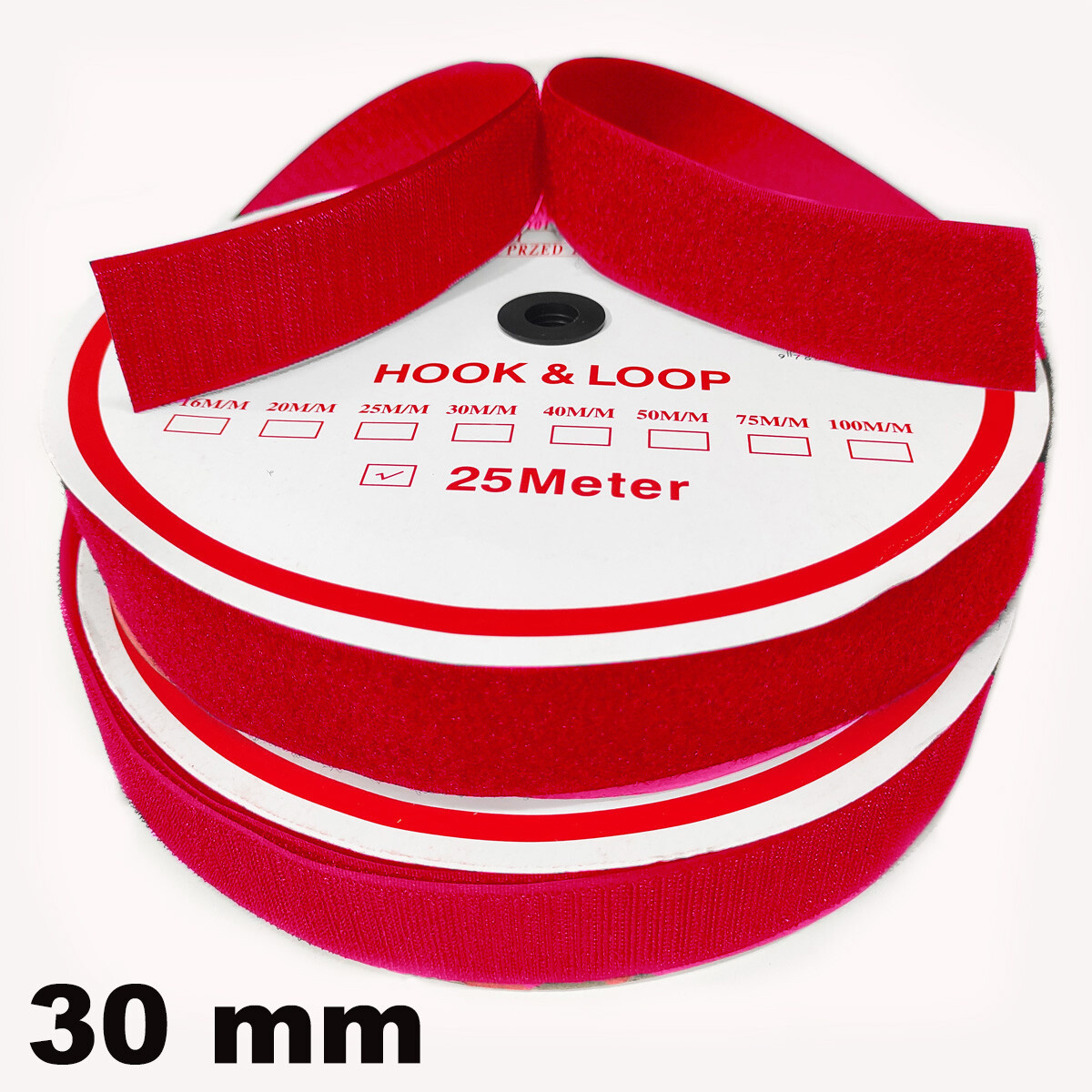 Hook and Loop Velcro Tape Set, Color Red 30 mm, Package 25 m