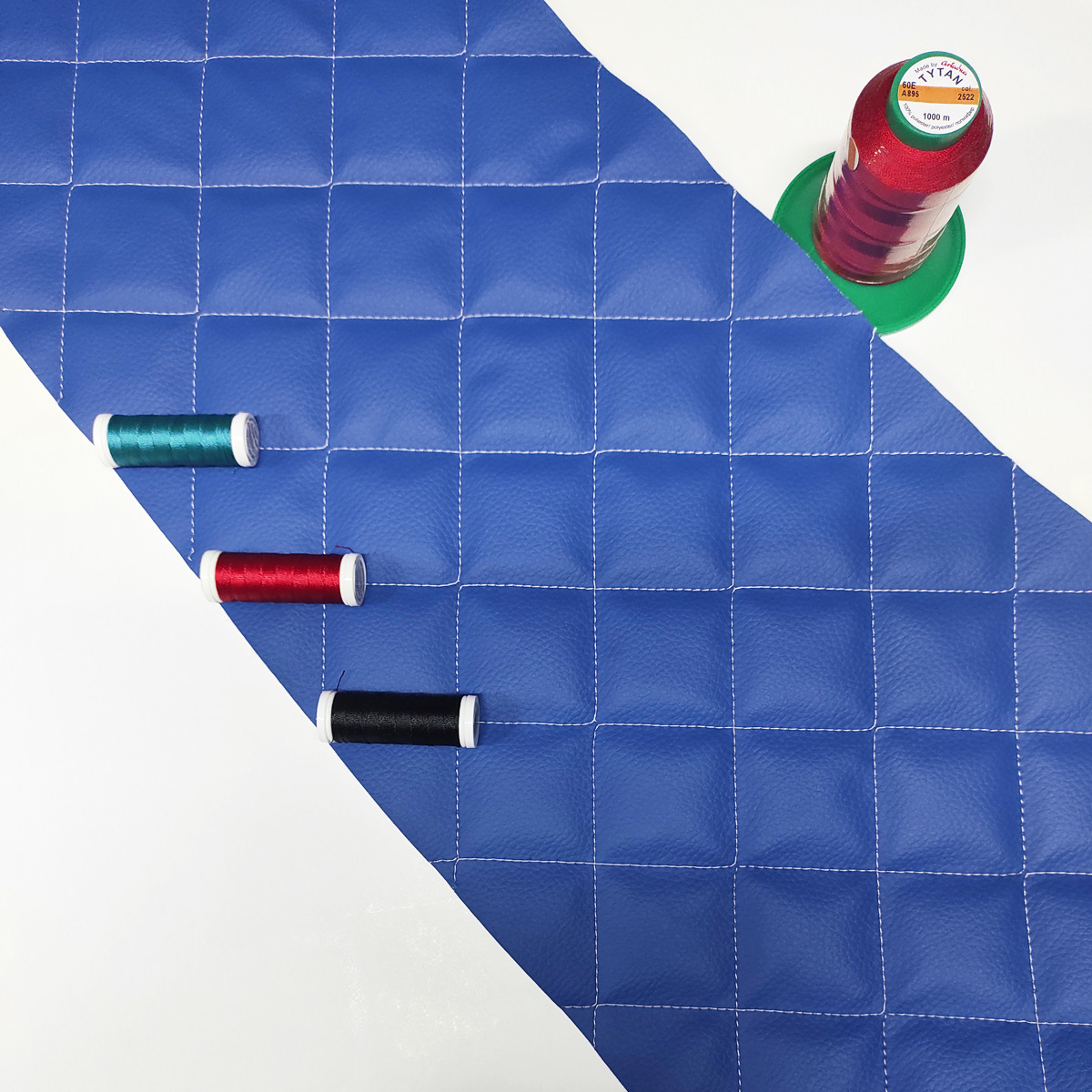 Material Description.Quilted eco-leather 5x5 is a modern synthetic upholstery material that combines the aesthetics of genuine leather with high durability and easy maintenance. The top layer of polyurethane (PU) ensures a pleasant touch and moisture resistance, while the underside of polyester knit provides elasticity and stability. Thanks to the regular 5x5 cm pattern created by stitching technology, the fabric is both decorative and practical.