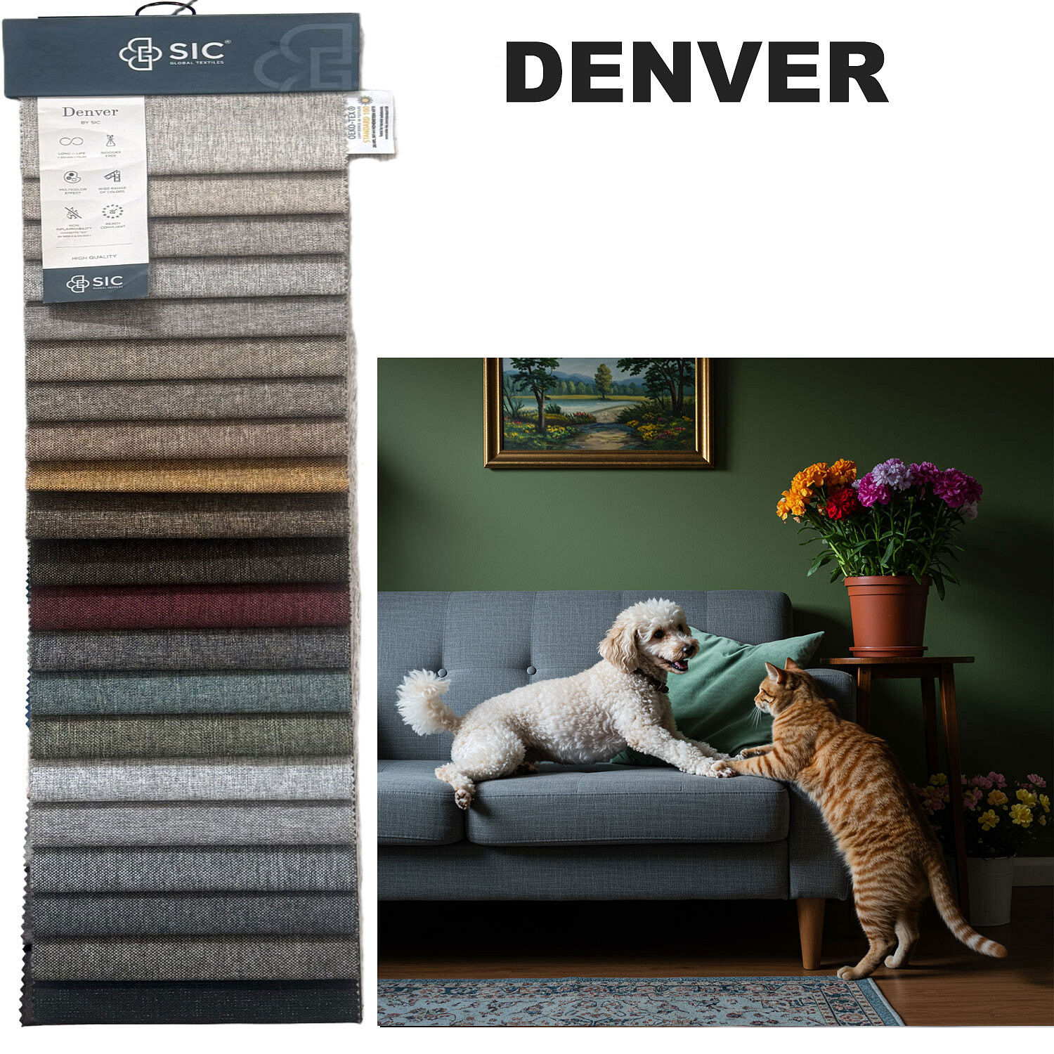 Description Sample of non-flammable upholstery fabrics Denver, 15x20 cm