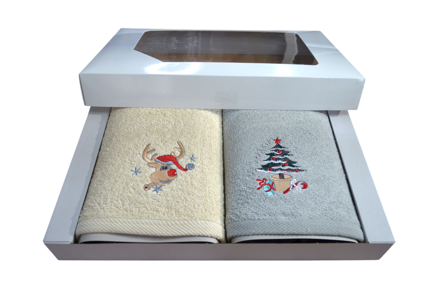 Set of Terry Towels 2 pcs 70x140 cm, color Gray and Ecru