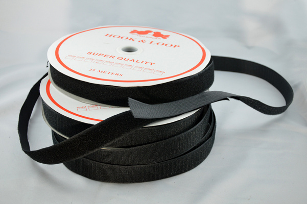 Description Sew-on Velcro Hook and Loop set, color Black 100 mm x 25 m