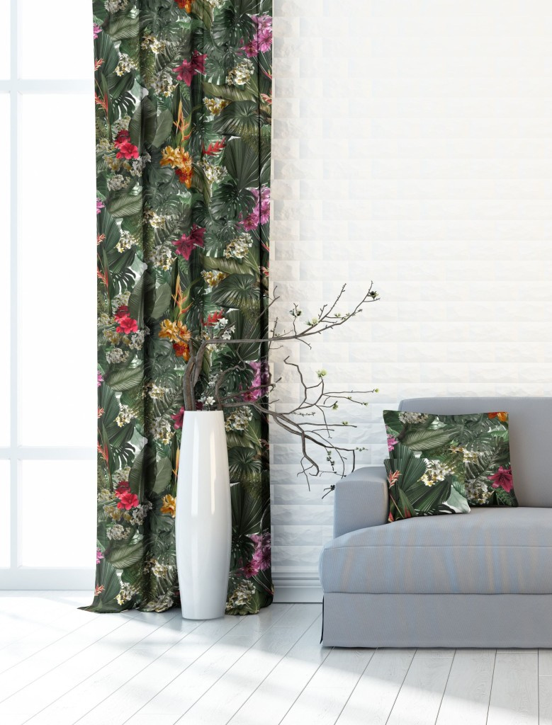 The fabric is made with an emphasis on sustainability. Thanks to the combination of synthetic and natural fibers, it is durable and at the same time environmentally friendly. High print quality and colorfastness ensure a long-lasting beautiful appearance even with intensive use.